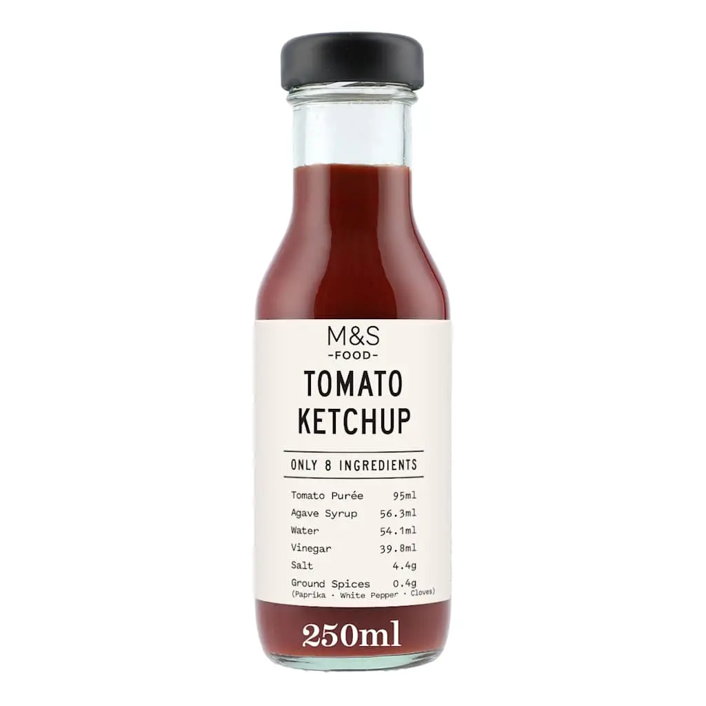 Only 8 Ingredients Tomato Ketchup: Rich tomato puree, lightly sweetened with agave syrup and seasoned with paprika, white pepper and cloves. A classic, tangy ketchup for dipping.
