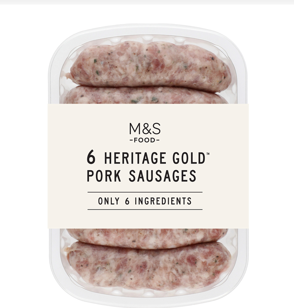 Only 6 Ingredients Pork Sausages Juicy, succulent pork (92%) seasoned with fragrant sage, sea salt and cracked black pepper, all encased in natural pork casings.
