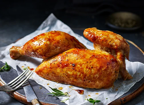 Great chicken meals start with great birds. Ours are slow-reared, British and 100% RSPCA-Assured, so you'll know you're getting the best quality every time you shop. Available in our hot food counters in the Foodhall, our succulent rotisserie chicken is slowly rotated on a spit, allowing it to gently baste throughout the cooking process for a juicy, rich flavour and a meltingly soft texture.