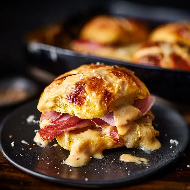 For a savoury twist on the classic, give this oozy grilled ham and cheese hot cross bun recipe – inspired by the flavours of Croque Monsieur – a go. Our Extremely Cheesy Hot Cross Buns are filled with slices of roasted ham and nutty Gruyère and topped with a generous layer of bubbling cheddar cheese sauce before being baked until gorgeously golden. This simple-to-assemble brunch or lunch will go down a treat with your guests over Easter.