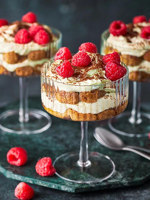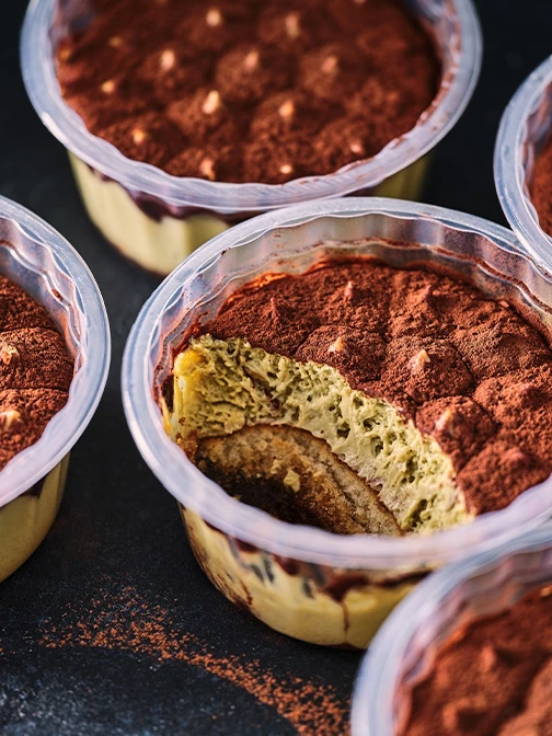 Pistachio Tiramisu – Obsessed with all things pistachio? We are, too. We've layered fluffy coffee-soaked sponge with creamy mascarpone and pistachio mousse, and crowned it with a generous dusting of cocoa.
