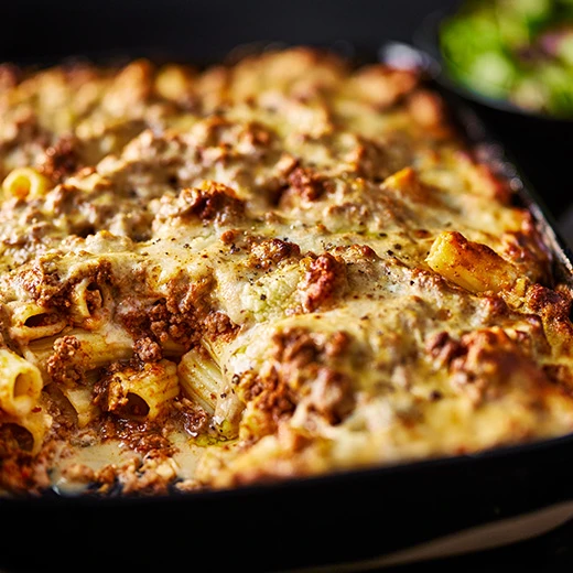 A rich, Greek-inspired pasta bake, layered with spiced beef, creamy béchamel, and tangy Barrel-Aged Feta. With clever shortcuts like Family Bolognese Sauce and Classic Everything Béchamel Sauce, our version is ready in under an hour – perfect for a hassle-free midweek dinner that's still super comforting.