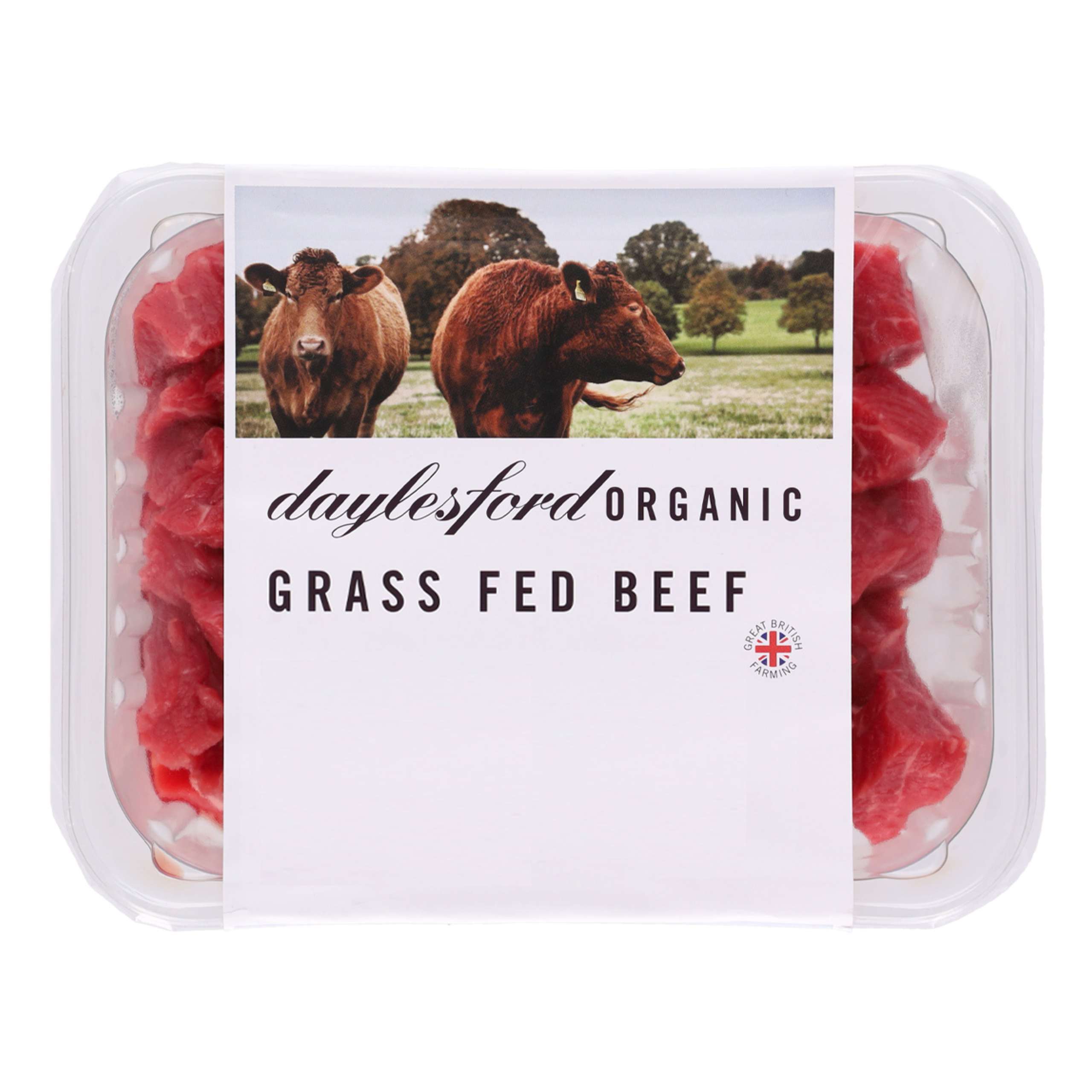 These Daylesford organic British beef braising dice come from cattle raised on natural grass. Their rich flavour makes them perfect for slow‑cooked dishes, especially a classic beef bourguignon.