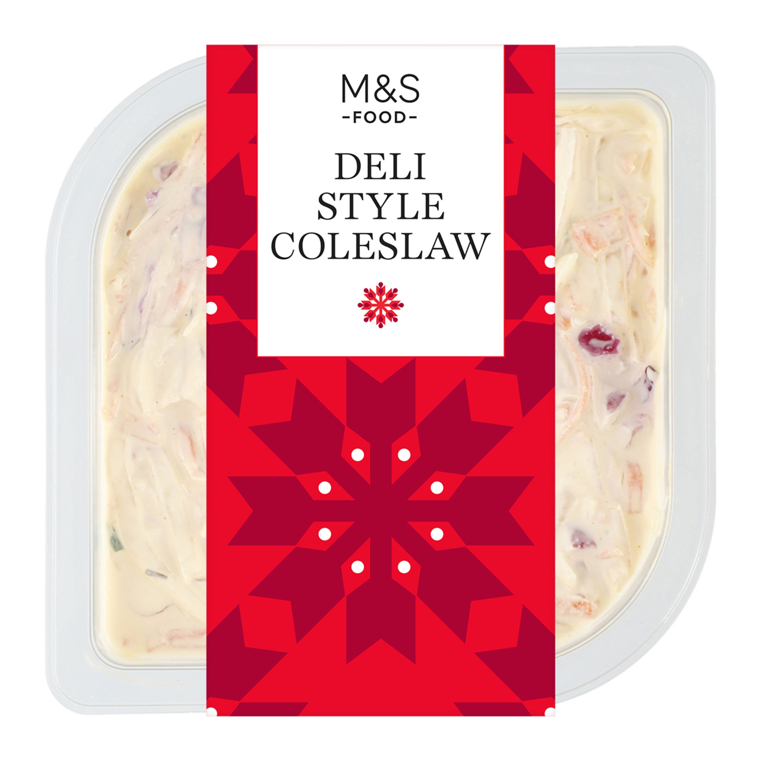 Our Deli Style Coleslaw contains a mix of crisp pink and white cabbage, vibrant carrots and red onions in a rich mayonnaise dressing, finished with chopped chives.