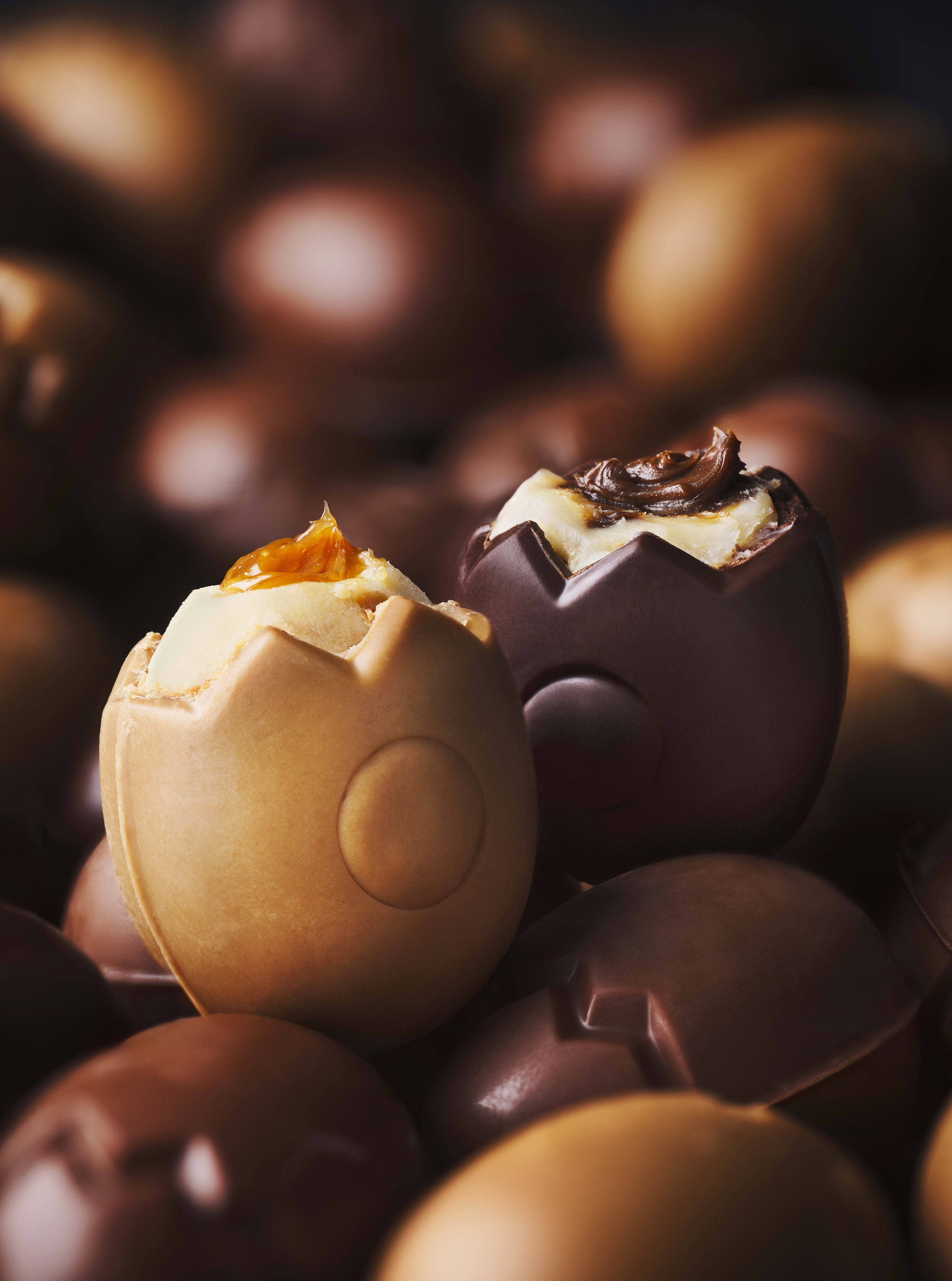 Our Eggstra Gooey Caramel Eggs have silky-smooth shells, made from milk and blond chocolate, filled with irresistible salted caramel and vanilla centres.