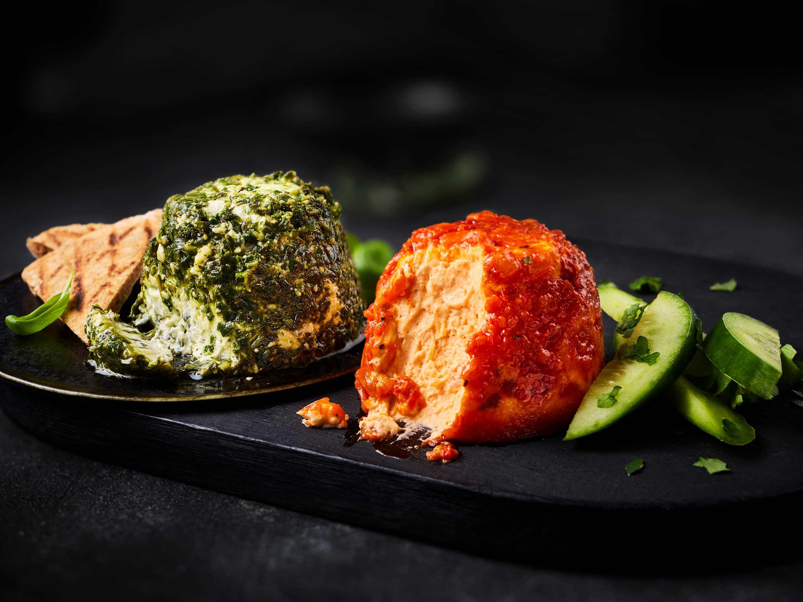 This creamy dip combines full fat soft cheese and Greek style yoghurt with parsley and basil. Topped with a garlicky pesto drizzle, it’s designed to be flipped and swirled. Easy to serve, impossible to resist.