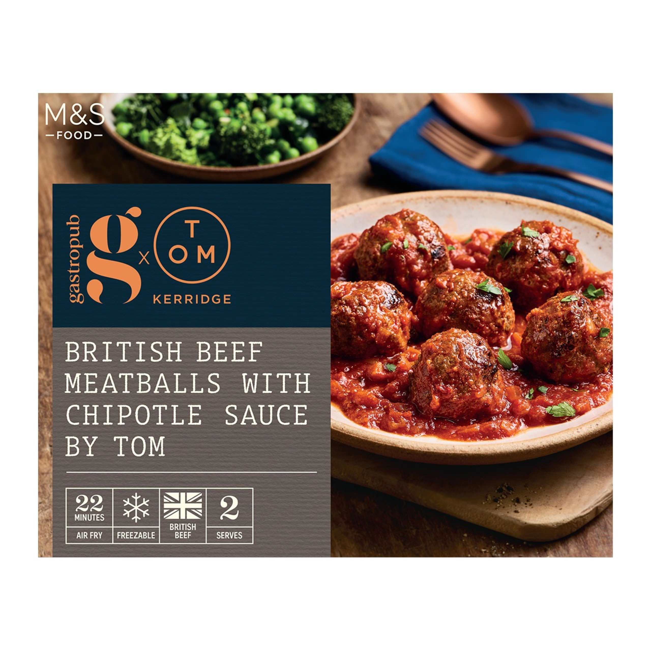 Our British beef meatballs by Tom Kerridge combine beef brisket with pork and smoked bacon. They're served with a helping of spicy tomato and chipotle chilli sauce for smoky warmth and a punchy finish.
