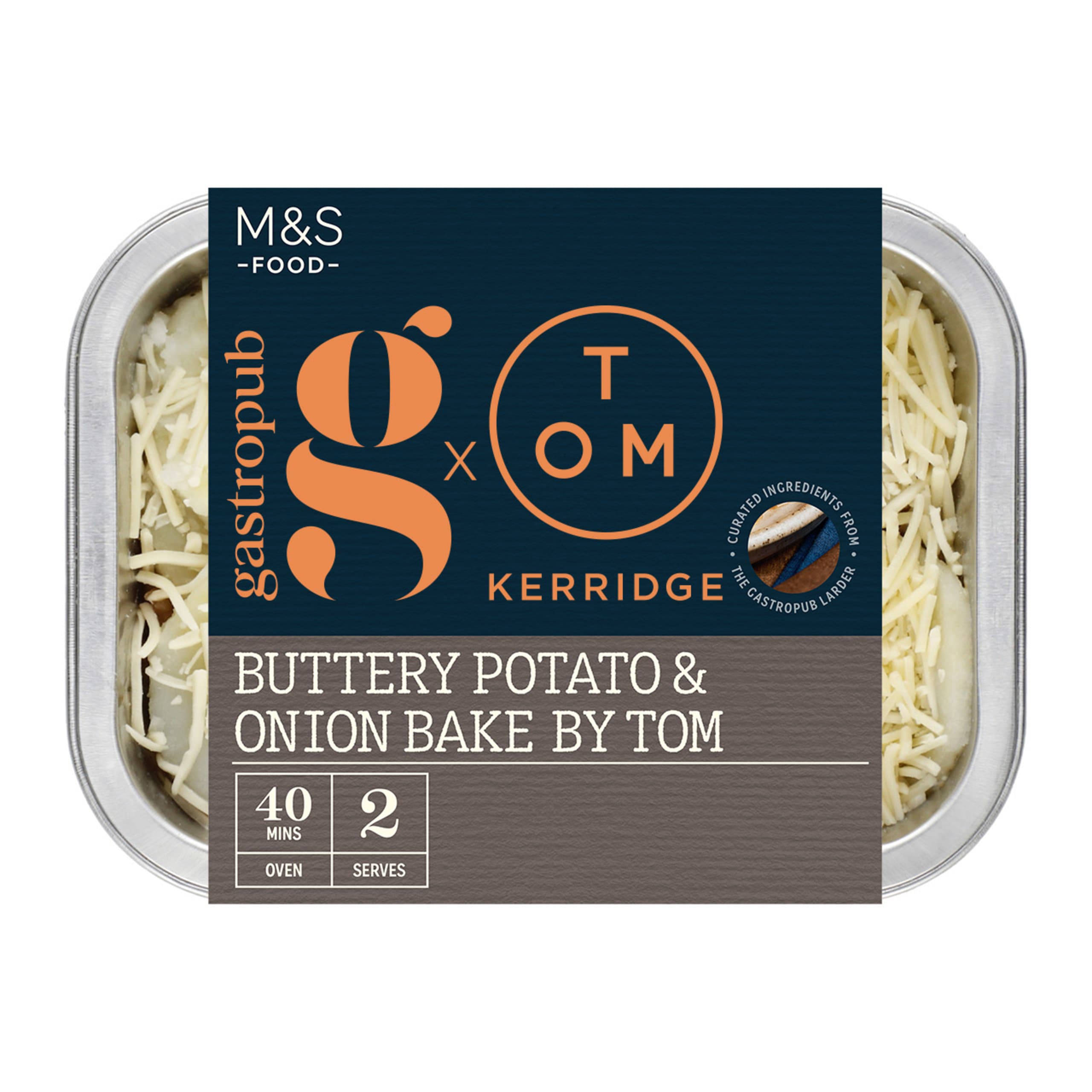 Enjoy a quick and flavourful midweek meal with our Gastropub Buttery Potato and Onion Bake by Tom. It features layers of tender, sliced potatoes covered with caramelised onions and savoury brown butter. The grated West Country mature cheddar topping ensures a rich, tangy finish.