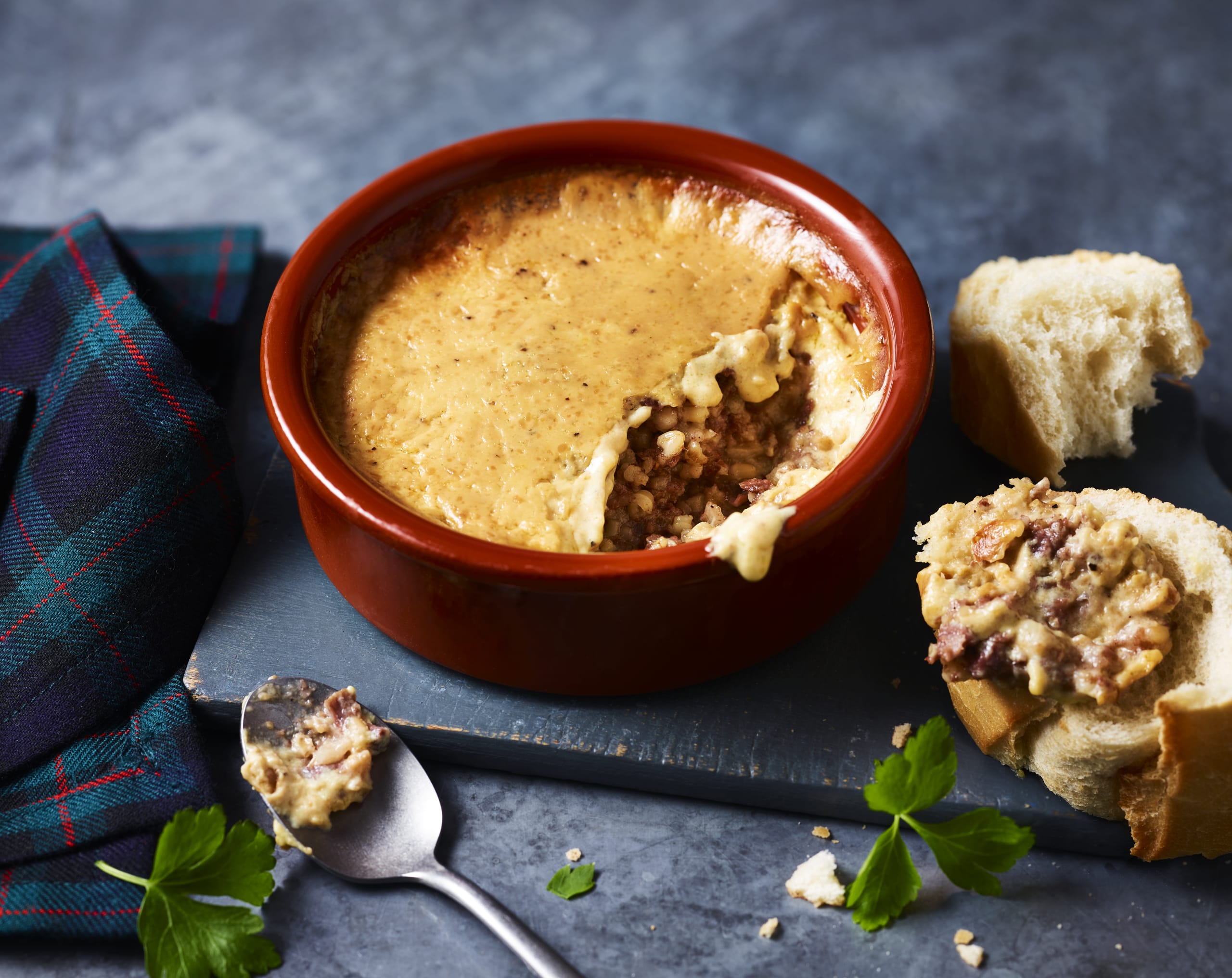 A rich, melty blend of mature Scottish Cheddar and traditionally made savoury haggis. Bake until bubbling and golden, then serve hot for dunking chunks of crusty sourdough or toasted bread.