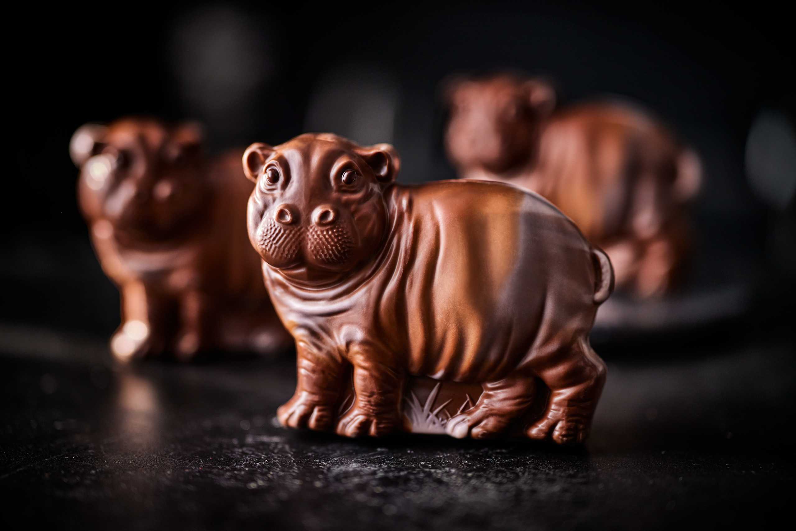 Hiccup the Hippo is a charming hollow milk chocolate figure, skillfully decorated with pale pink cheeks and an adorable design. This little hippo is the sweetest of treats.