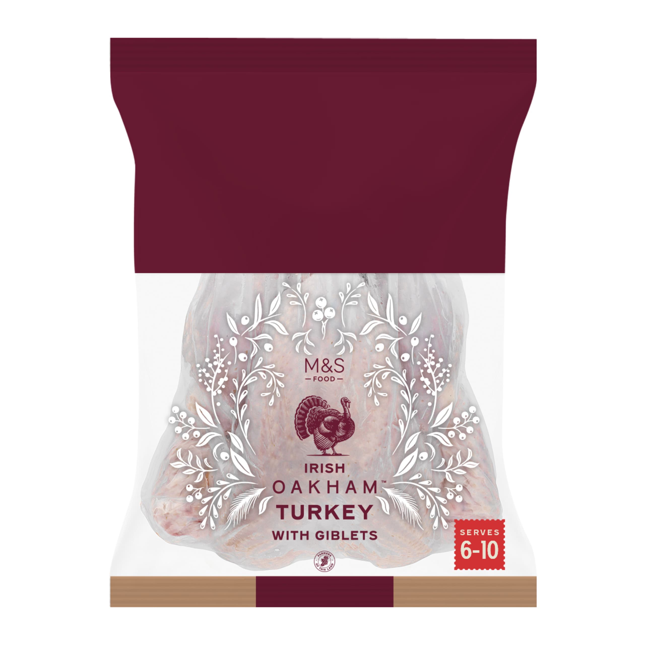 Cook up a festive feast with our Irish Oakham Turkey. It comes with giblets, which you can roast with your favourite veggies for a flavoursome homemade gravy or stuffing. This higher welfare turkey is sourced from trusted M&S Select Farms, where it was fed a multi-grain diet to ensure better-quality meat.