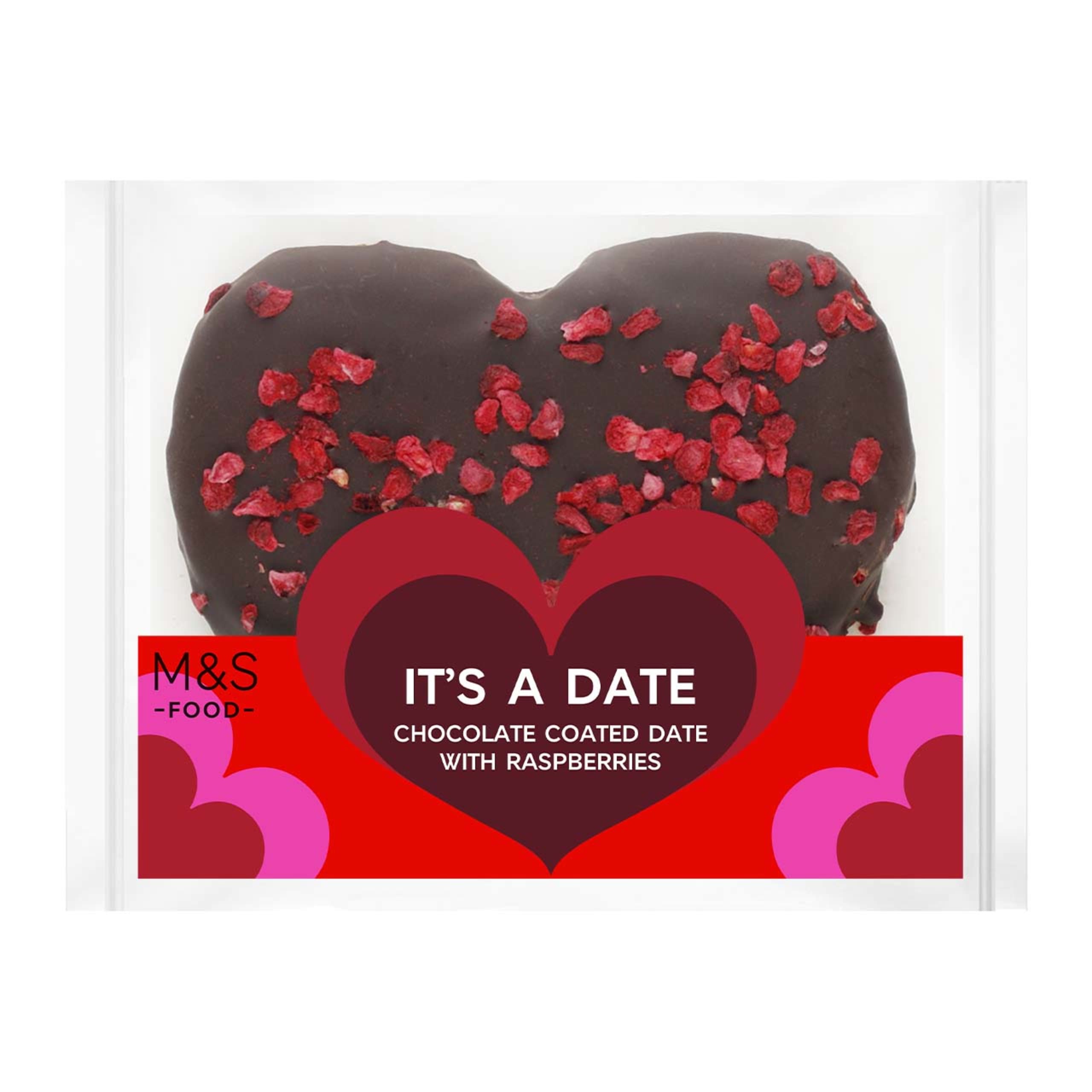 Make a date this Valentine's Day with our romantically heart-shaped date bar, coated in rich dark chocolate and sprinkled with tangy raspberries.