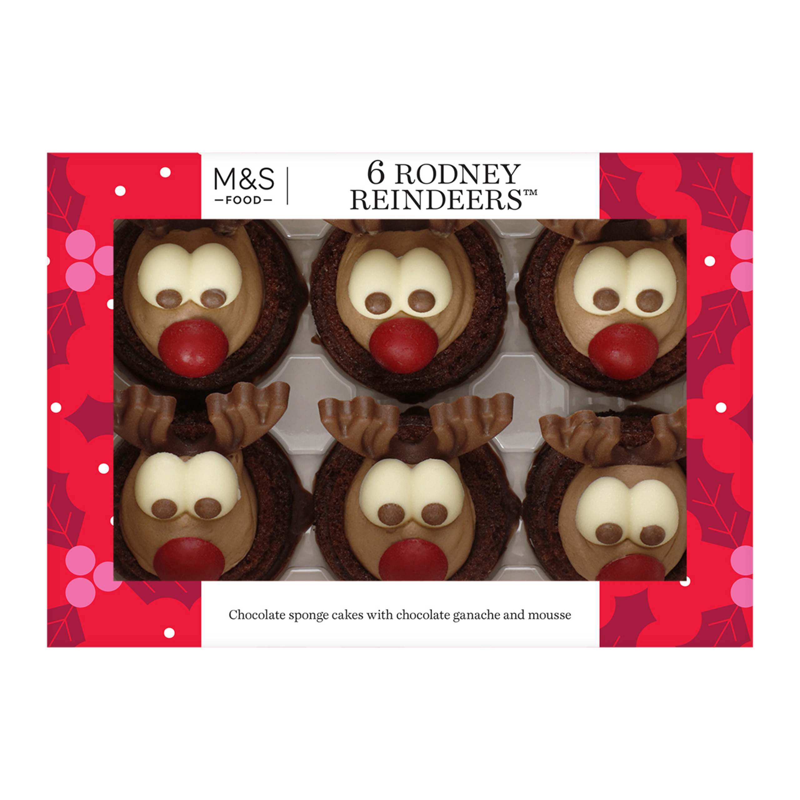 Packed with festive fun, our cheeky Rodney Reindeers feature moist chocolate sponge with a velvety mousse centre, layered over crisp chocolate wafer. Each one is topped with a cheerful reindeer face for a seasonal treat that’s sure to raise a smile.