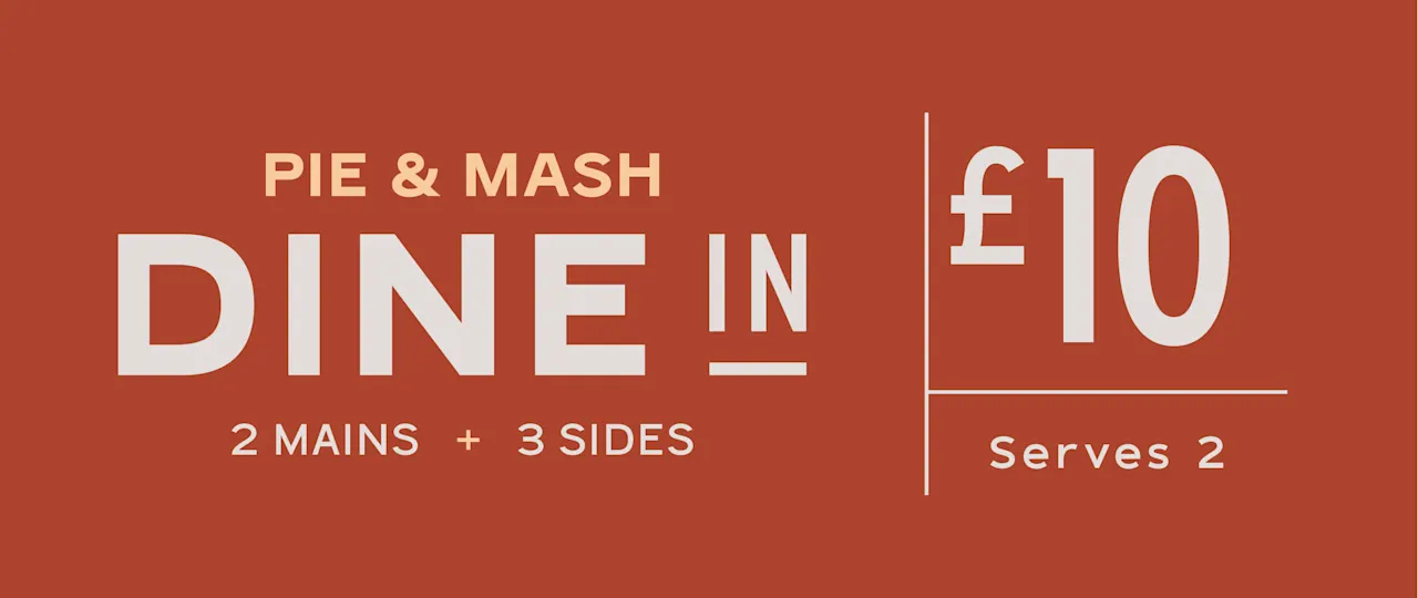 Our Pie and Mash Dine In is perfect for a comforting dinner at home – choose two hearty mains and three tasty sides for just £10.