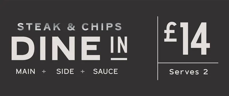 Our Steak and Chips Dine In brings the steakhouse experience home. For £14, get a main, a side and a sauce to serve two. We love the tender British Sirloin Steaks, perfectly paired with Sun Dried Tomato Hasselback Potatoes and a rich, creamy Mushroom Sauce. Find the Steak and Chips Dine In deal in store, and browse the products on the menu below.