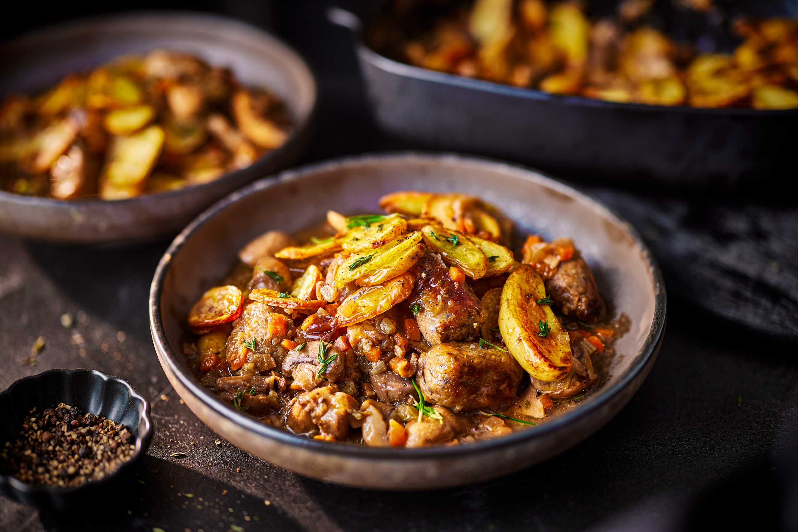 Our La Ratte Potatoes are sourced exclusively from M&S Select Farms. Known for their smooth, buttery texture and subtly nutty flavour, these speciality potatoes enhance meals with their refined taste. The Eat Well flower on the packaging shows these are a healthy option.