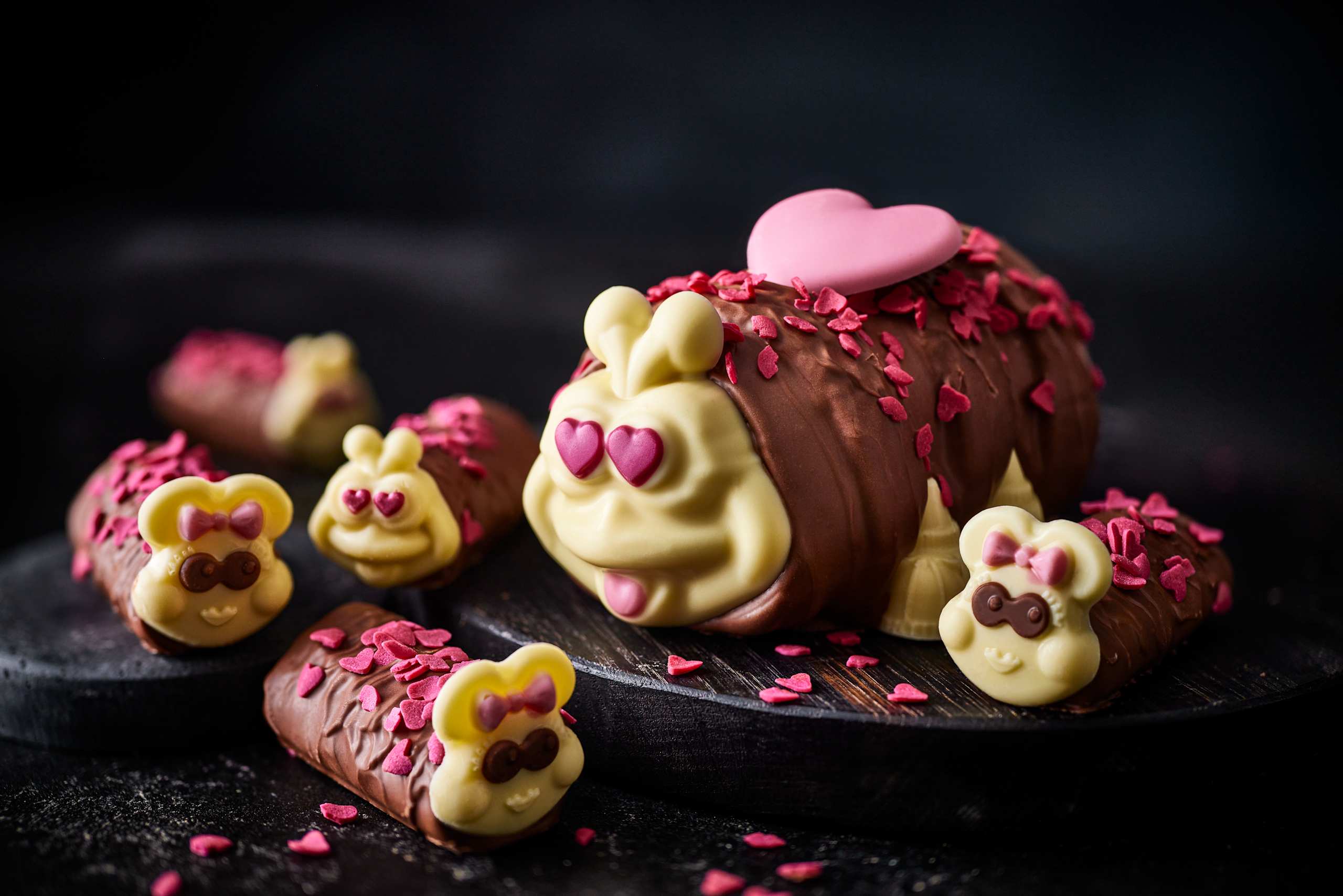 Putting a romantic twist on everyone’s favourite chocolatey cake creation, our Loved Up Colin the Caterpillar has been topped with a chocolate heart and showered with heart-shaped sprinkles. Under his milk chocolate coating is an extremely chocolatey sponge cake with chocolate buttercream.