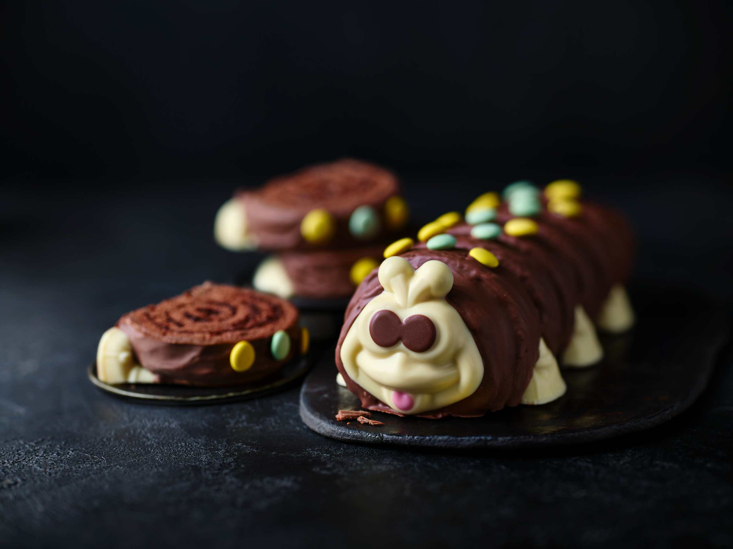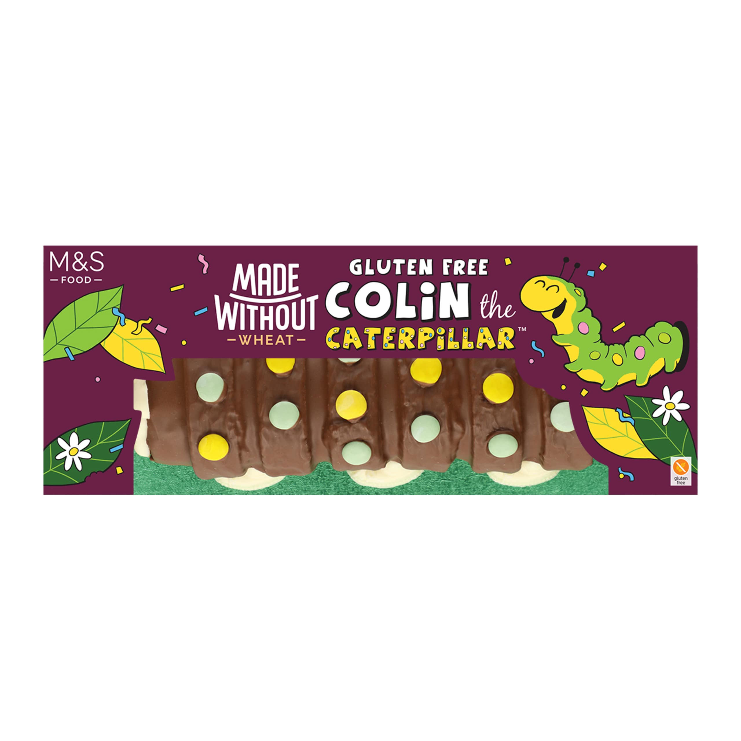 All the classic Colin deliciousness, minus the gluten. Our Made Without Wheat Gluten Free Colin the Caterpillar is the UK’s only gluten-free rolled caterpillar cake. Enjoy an extremely chocolatey sponge, made without wheat, filled with chocolate buttercream, coated in milk chocolate and finished with chocolate decorations.