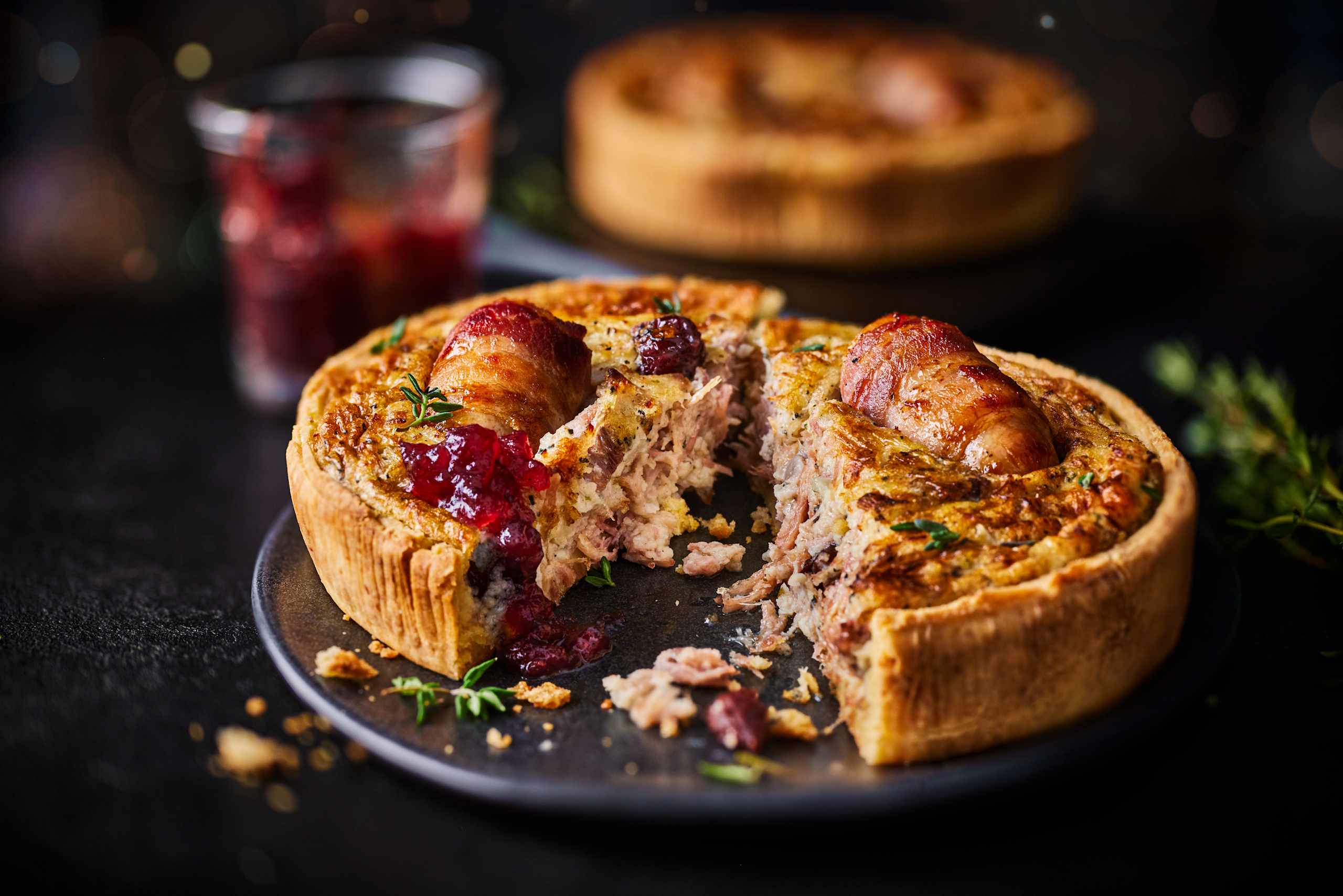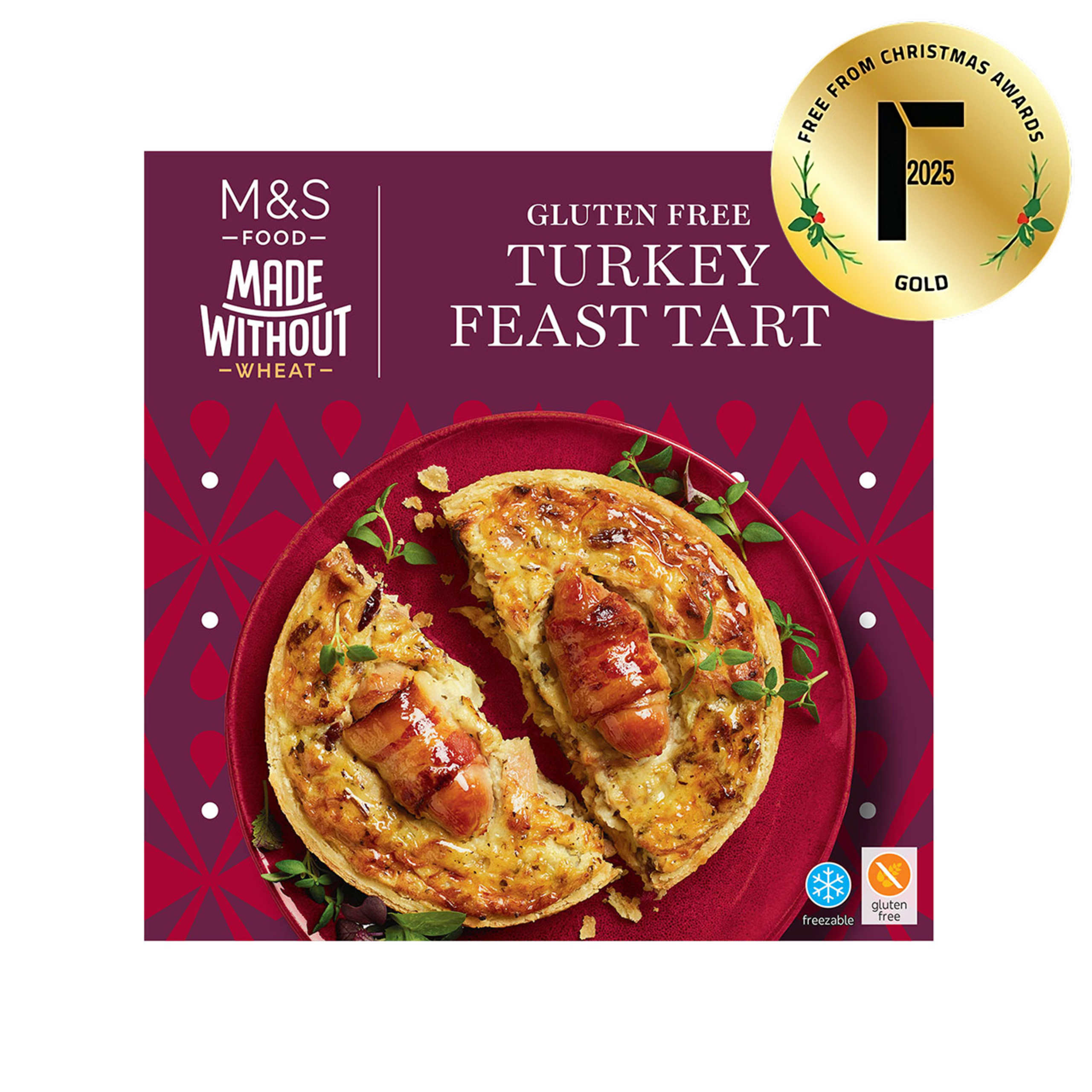 Our Made Without Wheat Gluten Free Turkey Feast Tart is full of the flavours of Christmas. Gluten-free, all-butter puff pastry is filled with succulent British turkey thigh, sweet cranberries and fragrant sage. Streaky bacon-wrapped pigs in blankets add extra festive indulgence.