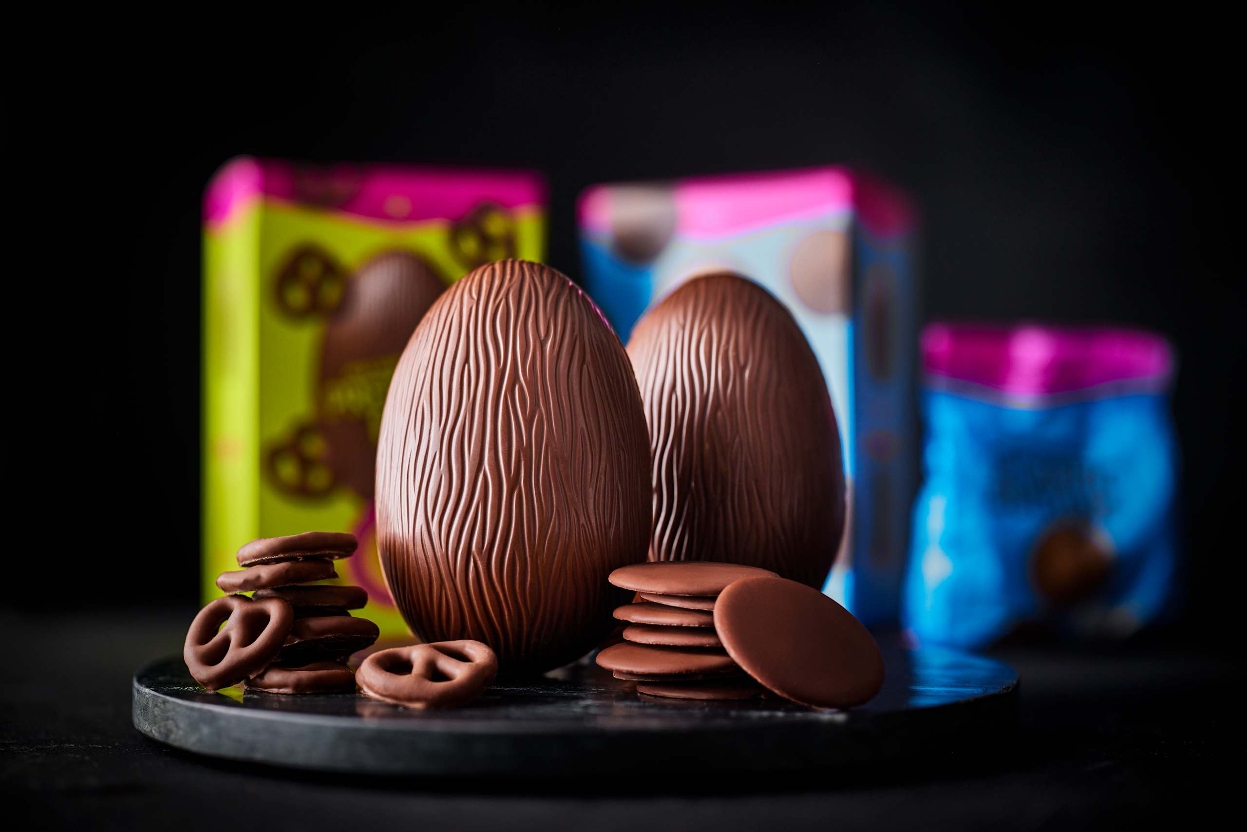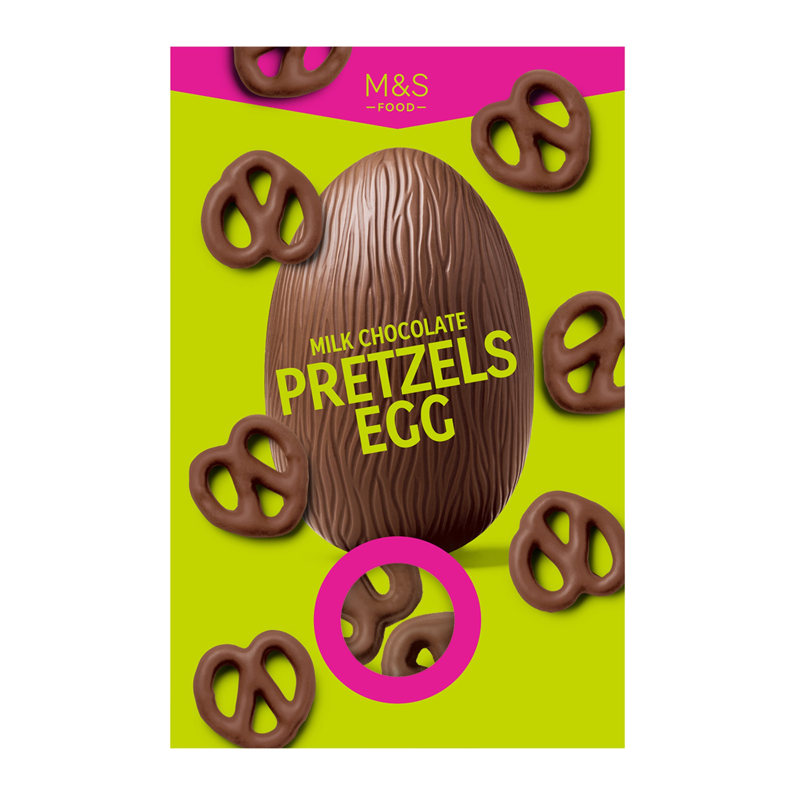 A sweet and salty mix – our creamy milk chocolate egg, wrapped in brightly coloured foil, comes with a bag of crunchy pretzels dipped in milk chocolate.