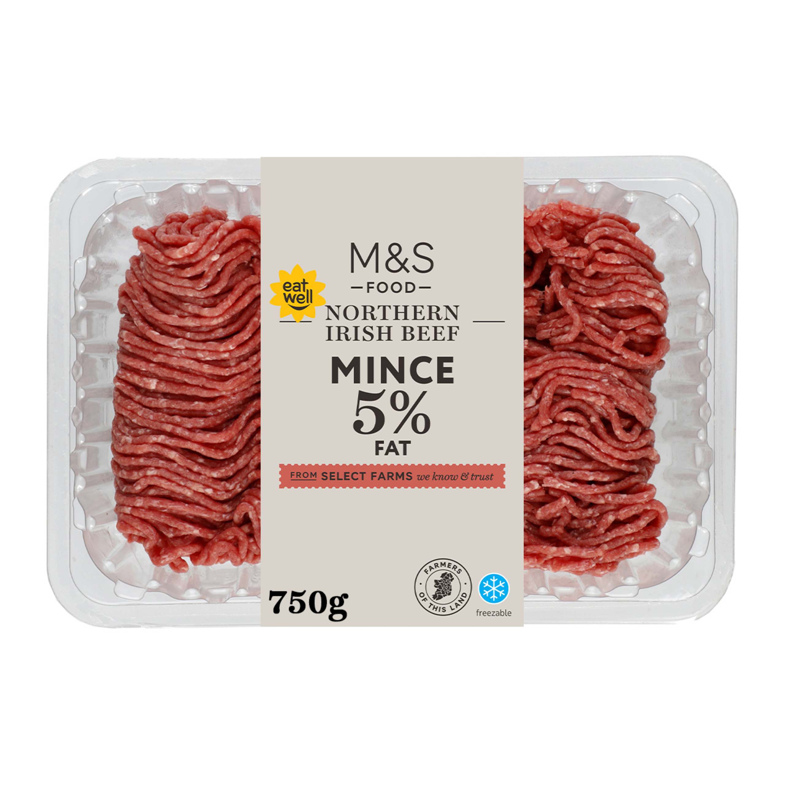 Sourced from trusted M&S Select Farms in Northern Ireland, this lean 5% fat beef mince is fully traceable to the farm and animal it came from. Ideal for bolognese, chilli con carne or meatballs.