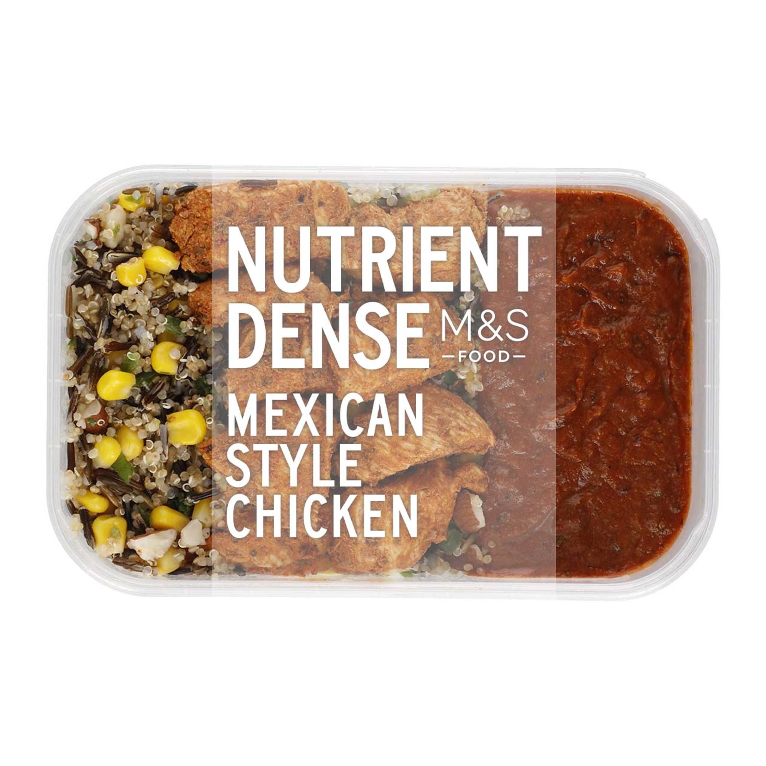 Succulent, spiced roasted chicken with vibrant quinoa, kale, sweetcorn, rice and almonds and a tomato, chilli, onion and pepper sauce, made with olive oil. This fuss-free, flavour-packed and nutrient-rich lunch or easy dinner contains 12g fibre, 39g protein and 496 calories.