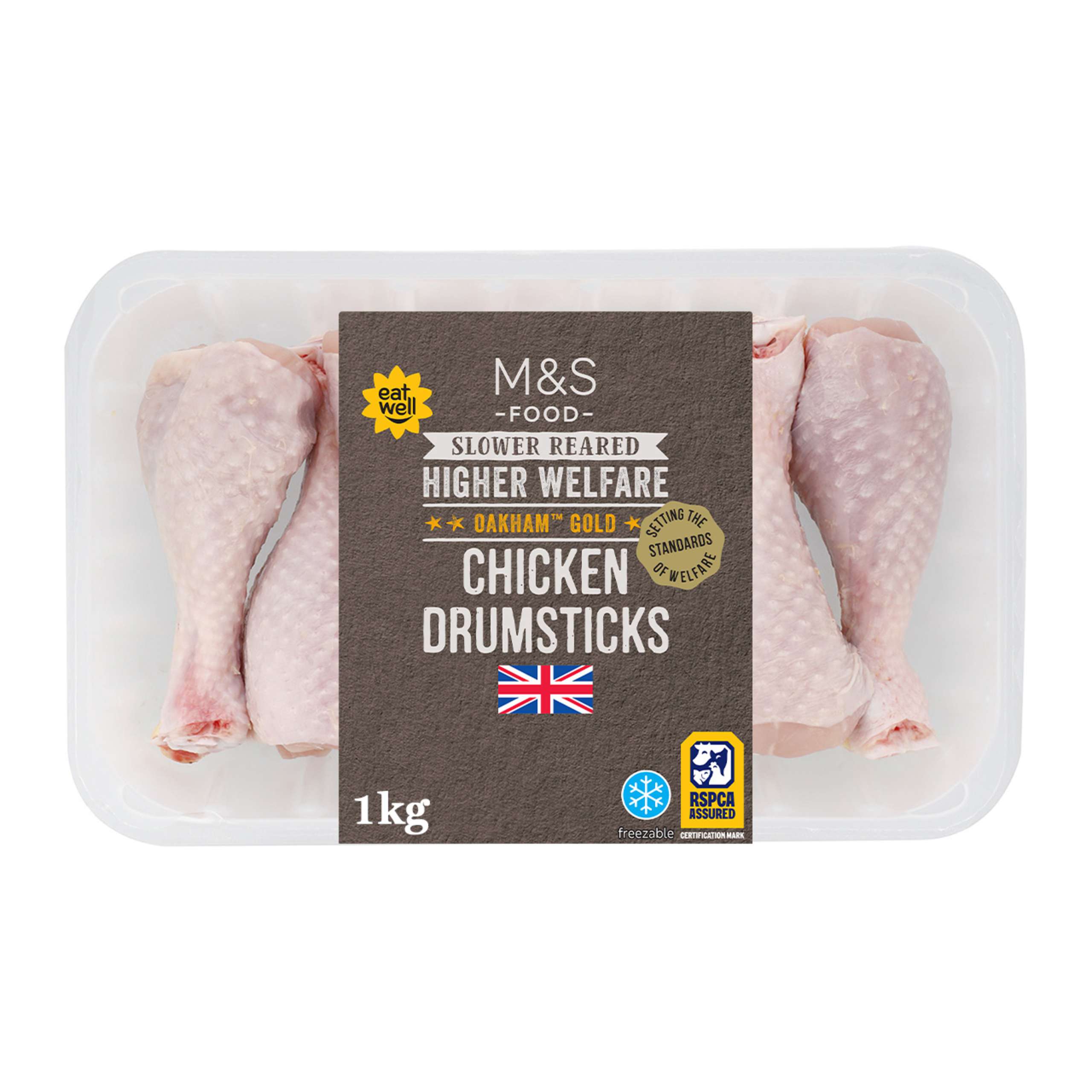 Our Oakham Gold Chicken Drumsticks have a superior taste and quality. Raised on M&S Select Farms with higher welfare standards, the chickens are fed on an enriched multi-grain diet, and have more space to roam. This ensures the drumsticks are succulent and high in protein. Our Eat Well flower lets you know they're a healthy choice that can be enjoyed as part of a balanced diet.
