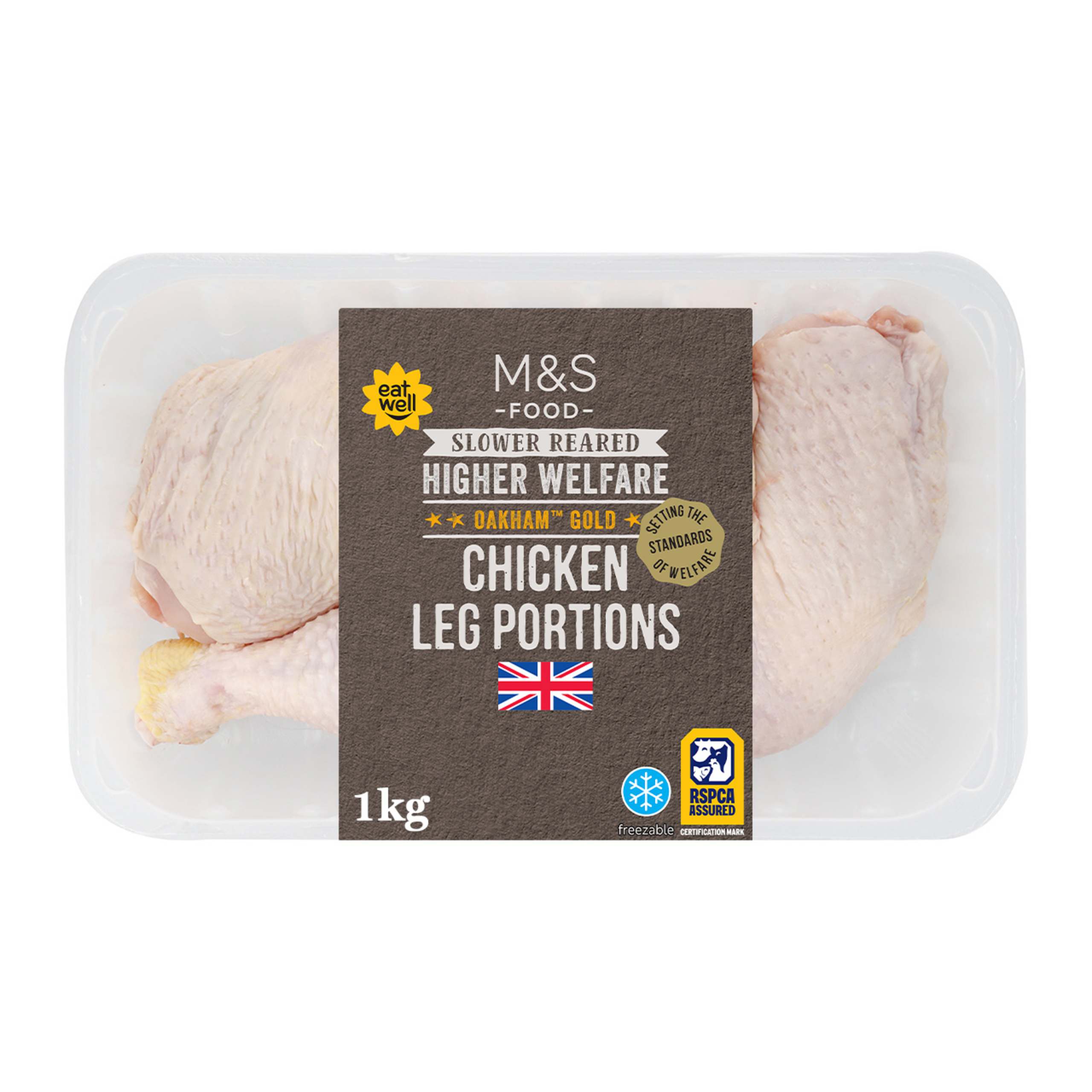 Discover the exceptional taste of our Oakham Gold Chicken Leg Portions, sourced from trusted M&S Select Farms. Raised with care, the chickens are fed a nutritious multi-grain diet, and enjoy the freedom to roam. Naturally high in protein, this product features our Eat Well flower, so you know it's a healthy choice that can be enjoyed as part of a balanced diet.