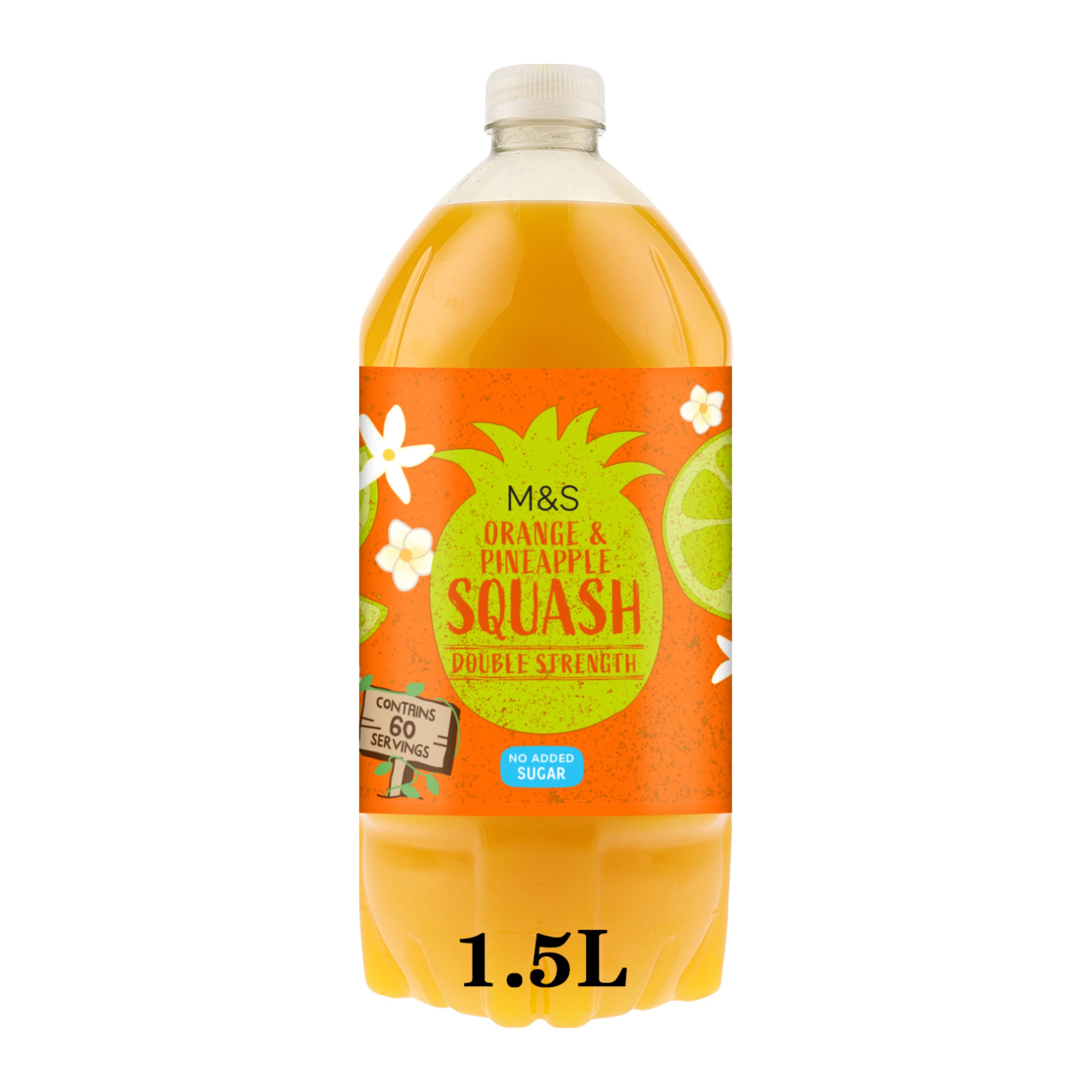 Enjoy the tropical fruit flavour of our Orange and Pineapple Squash, made with 20% real fruit and no added sugar. It's double strength, so you need just a splash. Contains no artificial colours or flavourings.