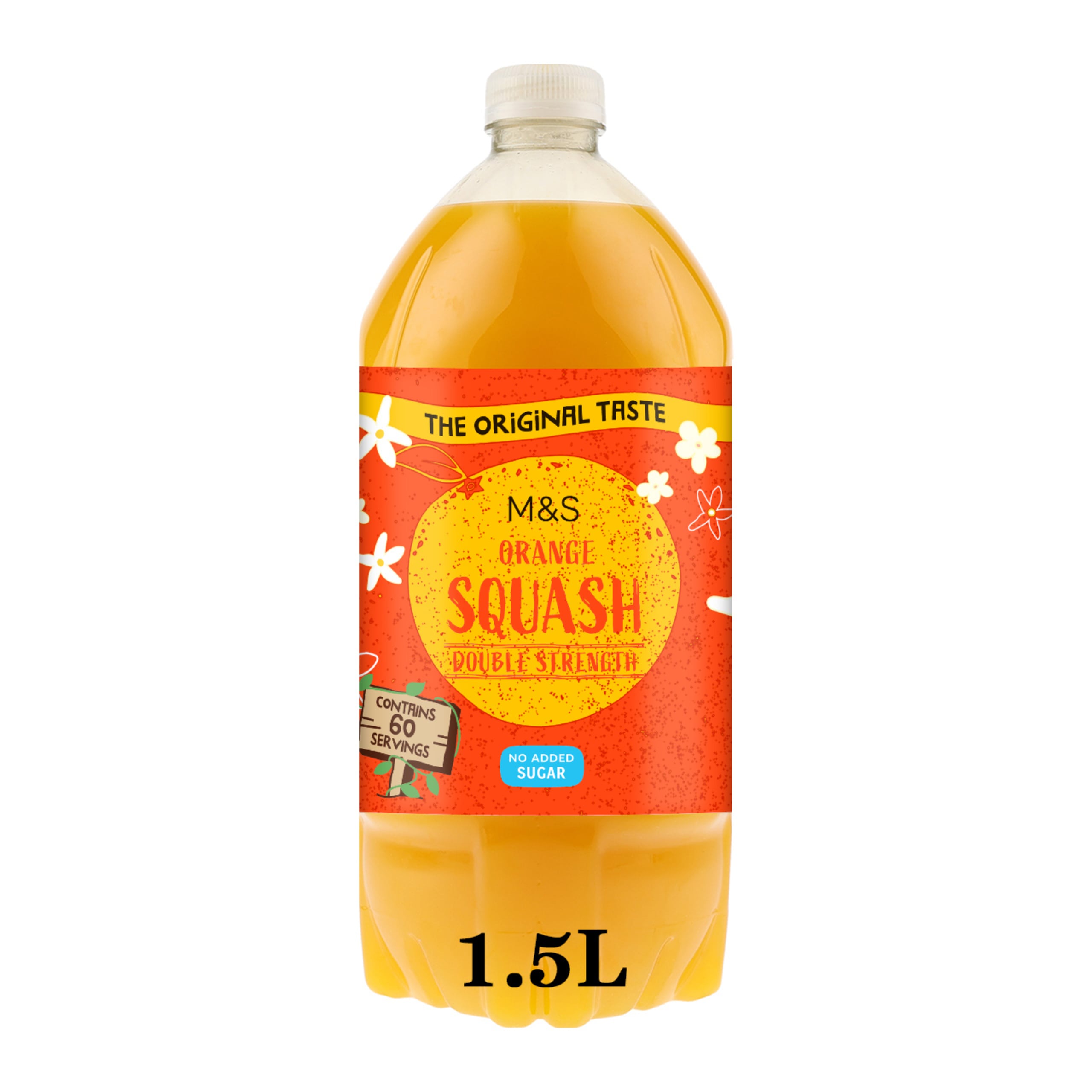 Enjoy the original taste of our Orange Squash, made with 20% real fruit and no added sugar. It's double strength, so a splash is all you need. Contains no artificial colours or flavourings.