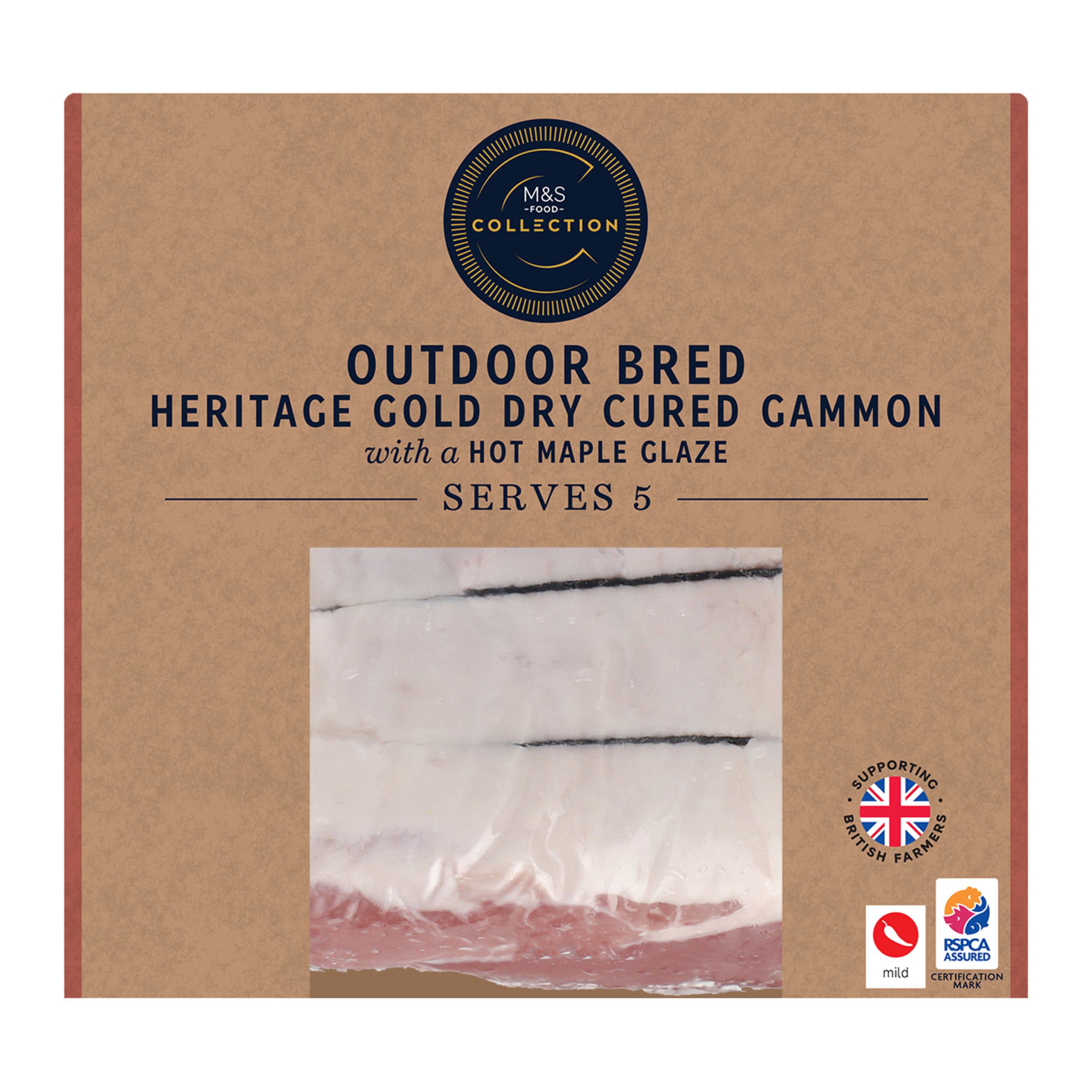 This Heritage Gold Gammon is made with British pork that’s outdoor bred and RSPCA Assured. It’s dry cured for depth of flavour and comes with a hot maple glaze for a gently spiced, sweet finish. Roast until caramelised for an easy centrepiece.