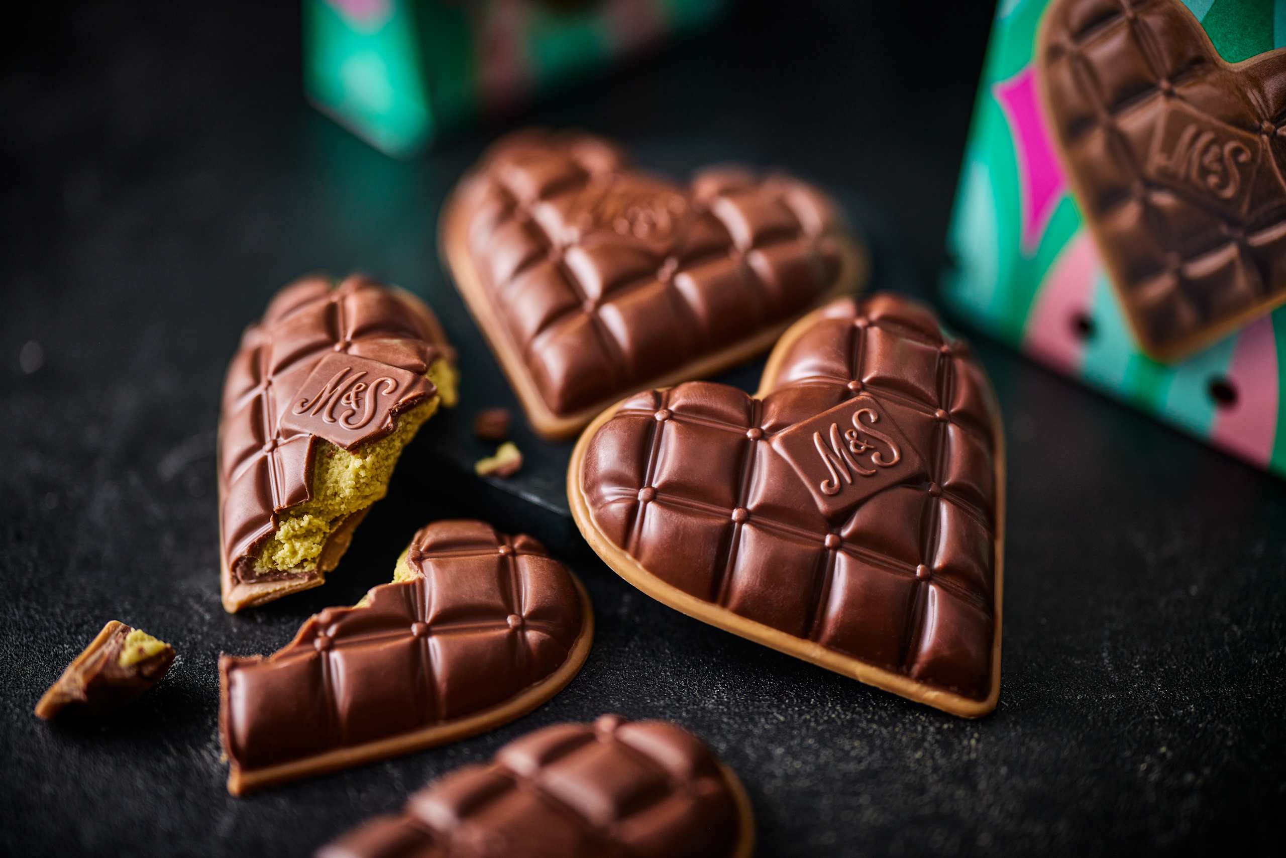 Our Pistachio Heart combines milk and white chocolate in a caramelised sugar shell, filled with salted pistachio nut cream and a white chocolate truffle filling for a sweet treat with a nutty crunch.