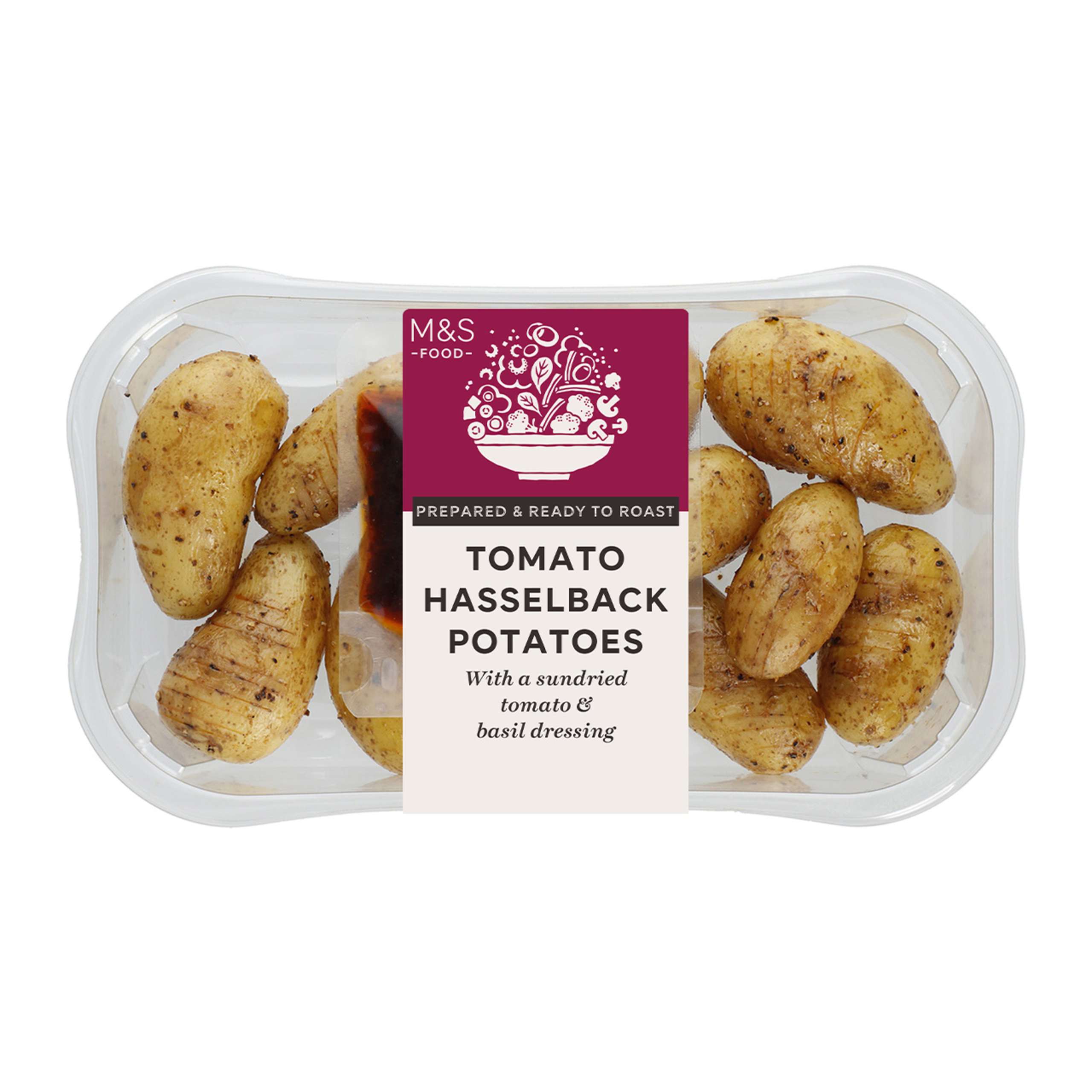 Have us do the prep work for you with our Ready to Roast Tomato Hasselback Potatoes. They're marinated in a blend of oil, sea salt, garlic, honey and paprika, accompanied by a sun-dried tomato and basil dressing.