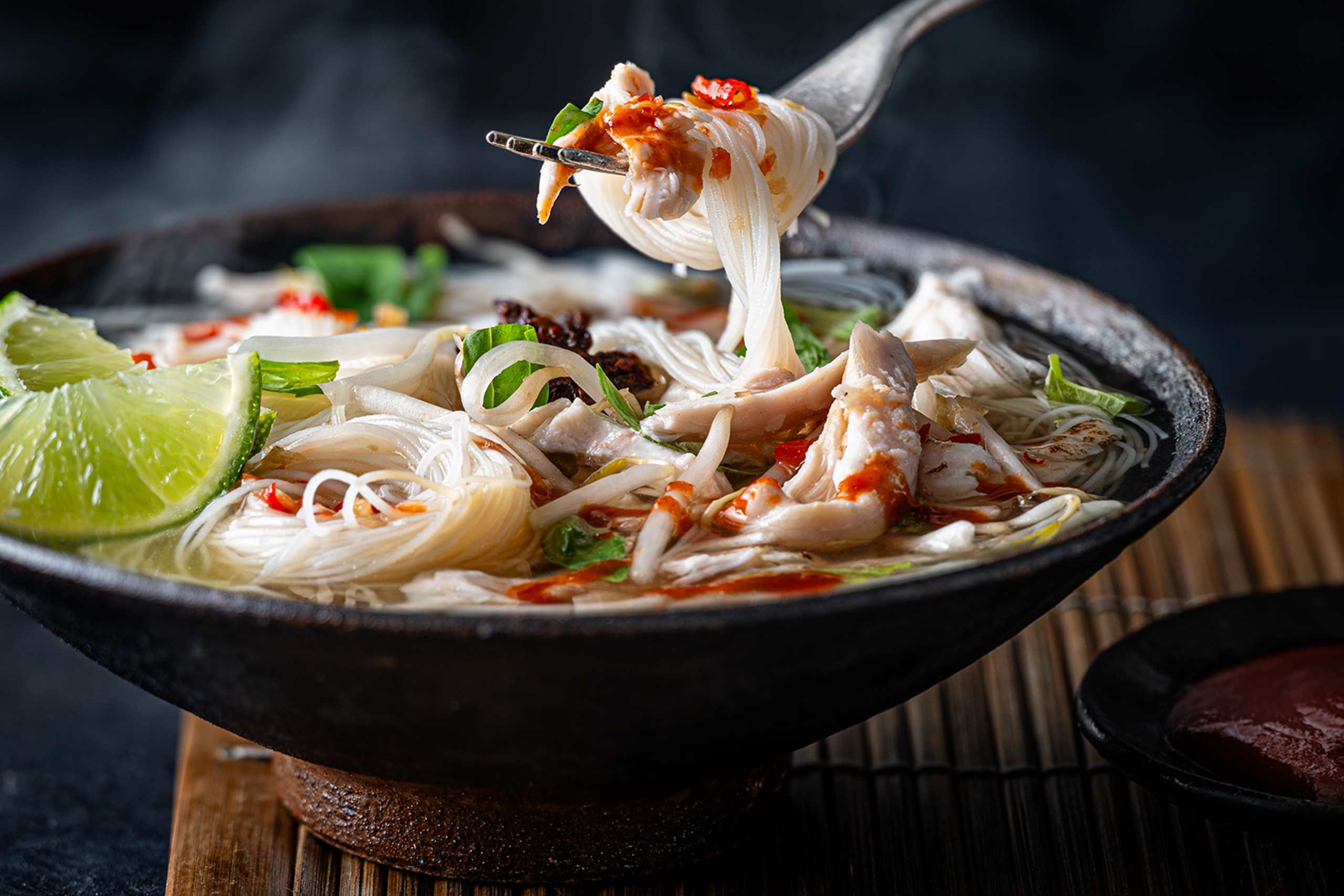 Our Rice Noodles are crafted from traditional recipes, ensuring a rich, thick texture just made for soaking up the flavours of a stir-fry sauce. Simply toss with your favourite ingredients for a quick weeknight supper. Our Eat Well flower lets you know that it's a healthy choice.