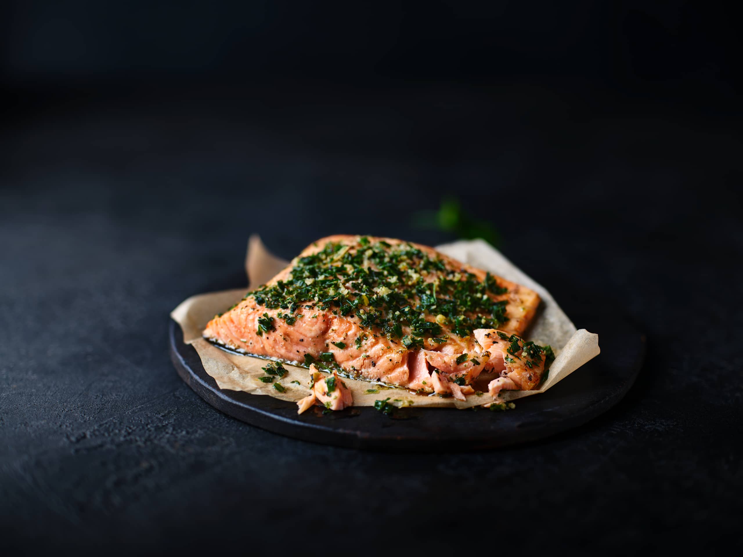 This skin-on, perfectly flaky Scottish salmon fillet is the ultimate fuss-free fish supper. With a fragrant mixed herb topping and a pat of zesty lemon-and-pepper butter, it's ready to roast in the bag until beautifully succulent.