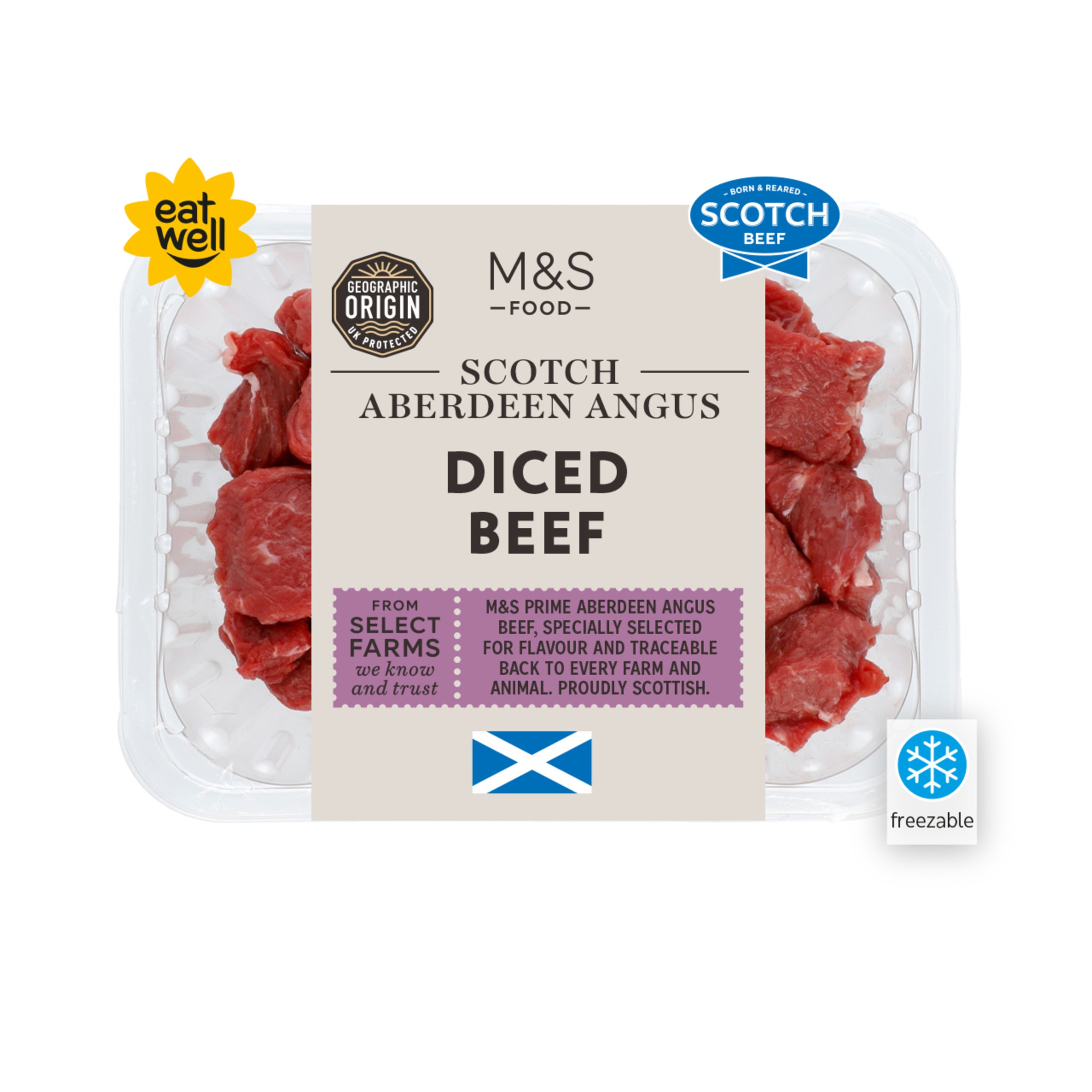 This 100% British diced beef comes from quality Aberdeen Angus cattle reared in Scotland. It's traceable back to the farm and animal it came from and features our Eat Well flower so you know it’s a healthy choice and can be enjoyed as part of a balanced diet. Ideal for slow cooking, this versatile beef makes a rich and hearty stew with your favourite vegetables and stock.