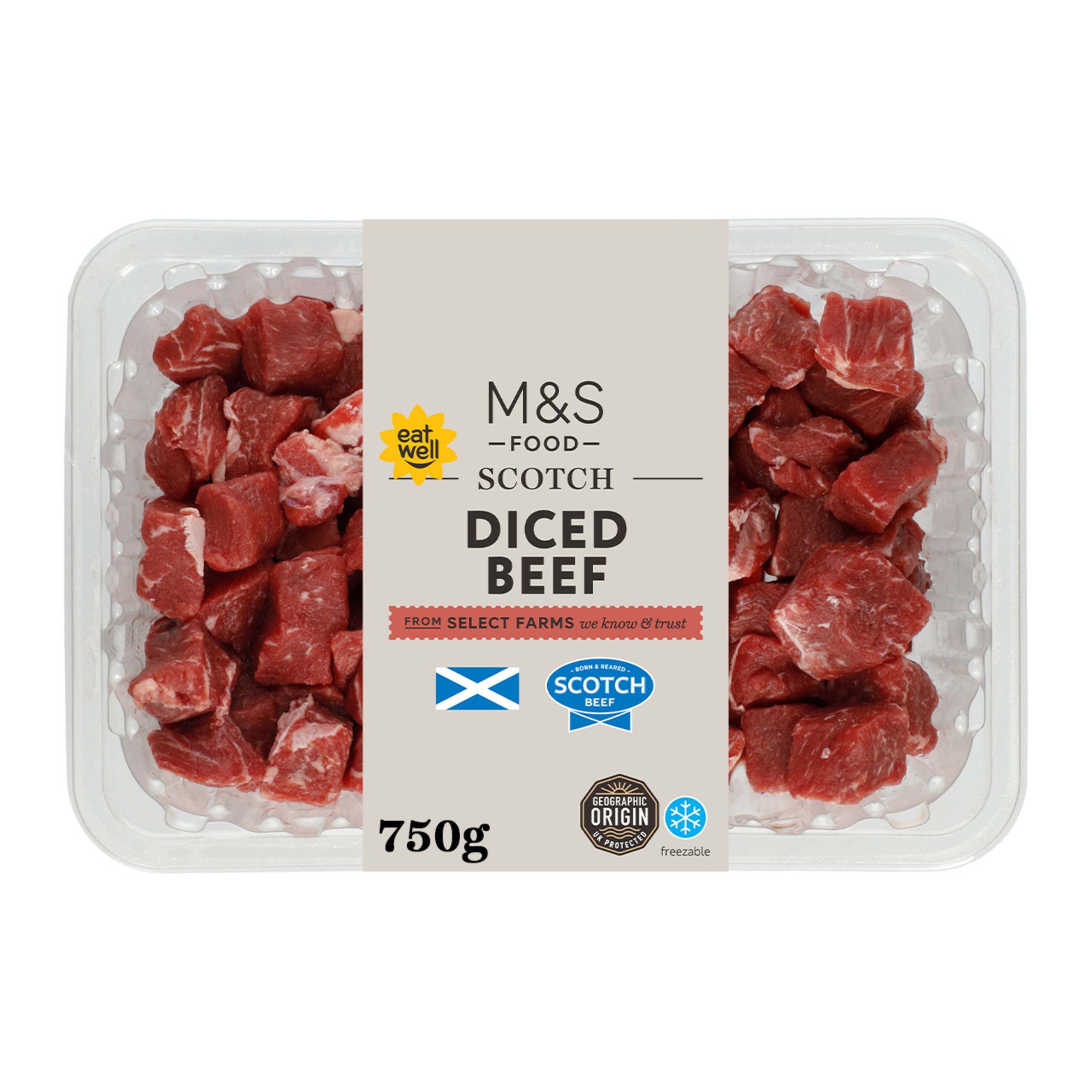 Our Scottish Diced Beef features rich, succulent cuts from prime Scotch beef. These generous cubes are a great choice for stews and pies, ensuring deep flavour with every bite. All M&S fresh beef is traceable back to the farm and animal it came from. This beef features our Eat Well flower so you know it’s a healthy choice and can be enjoyed as part of a balanced diet.
