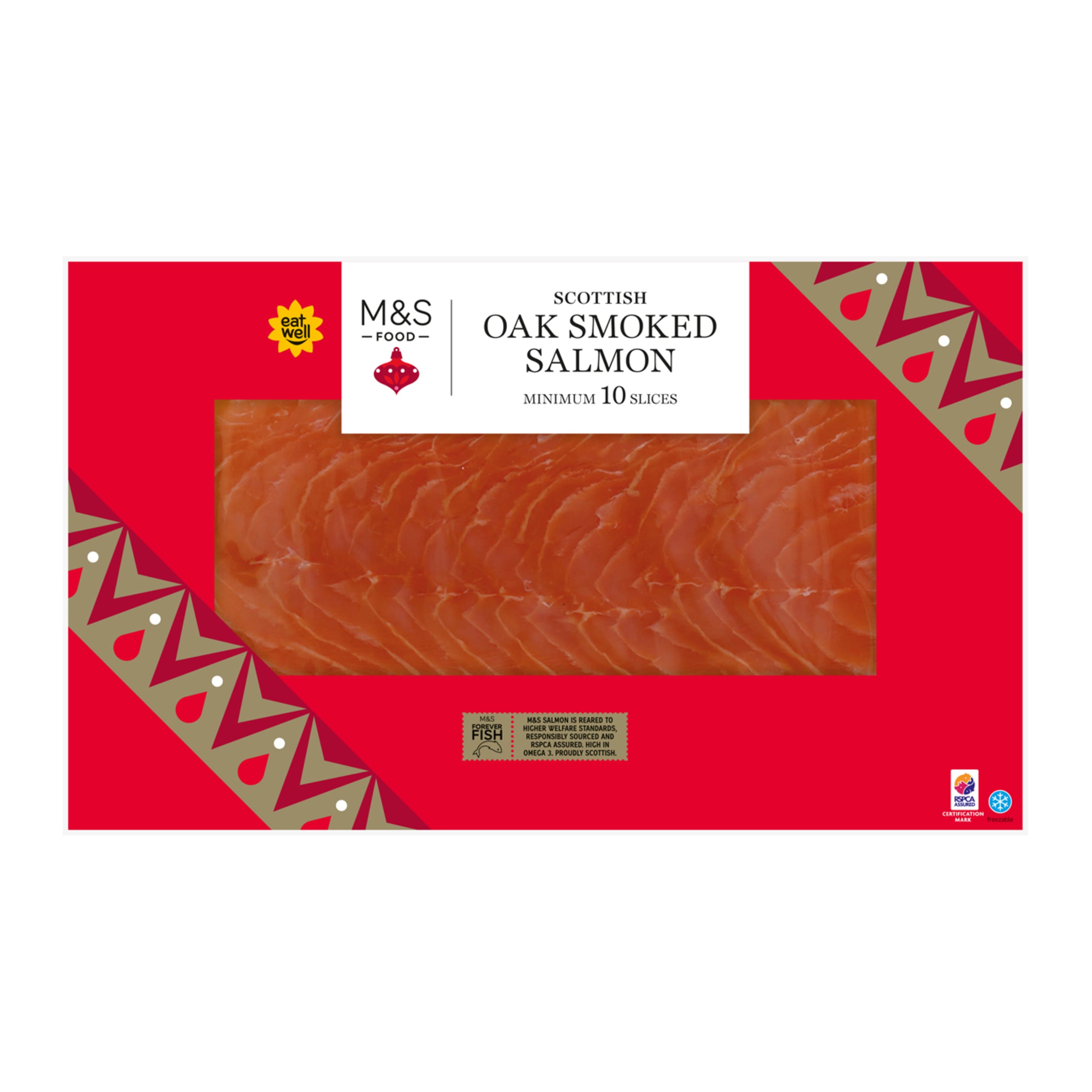 Our sliced Scottish Oak Smoked Salmon is cured and carefully smoked over oak wood by our expert smokers for a light and delicate flavour. Responsibly sourced from cool, clear Scottish waters, it's high in omega 3, and stamped with our Eat Well health seal of approval.