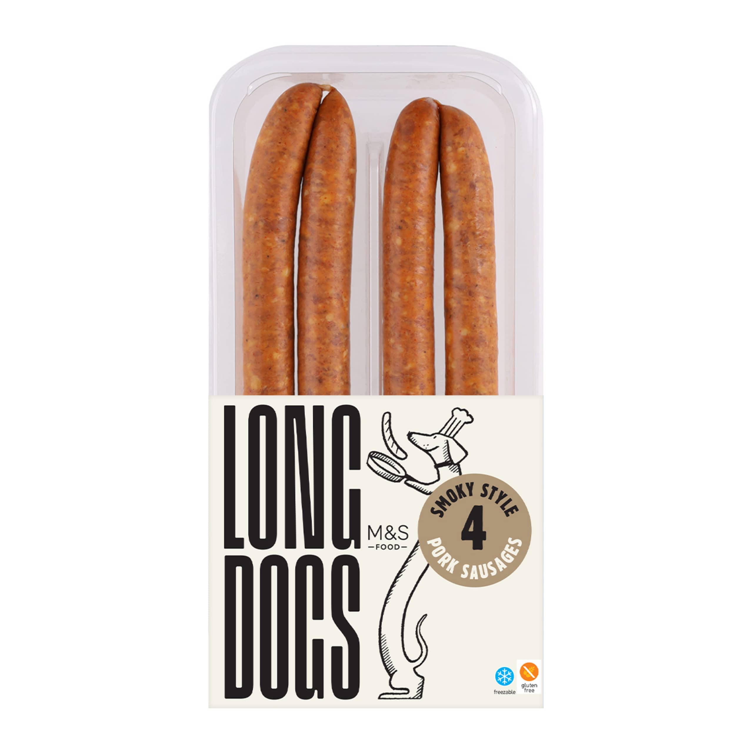 A bold twist on the classic hot dog, our 230mm Smoky Style Long Dogs combine British outdoor‑bred pork with bacon, cherrywood smoke and a gentle kick of paprika and cayenne. Perfectly served in our cheesy sub rolls, topped with mustard and crispy onions.