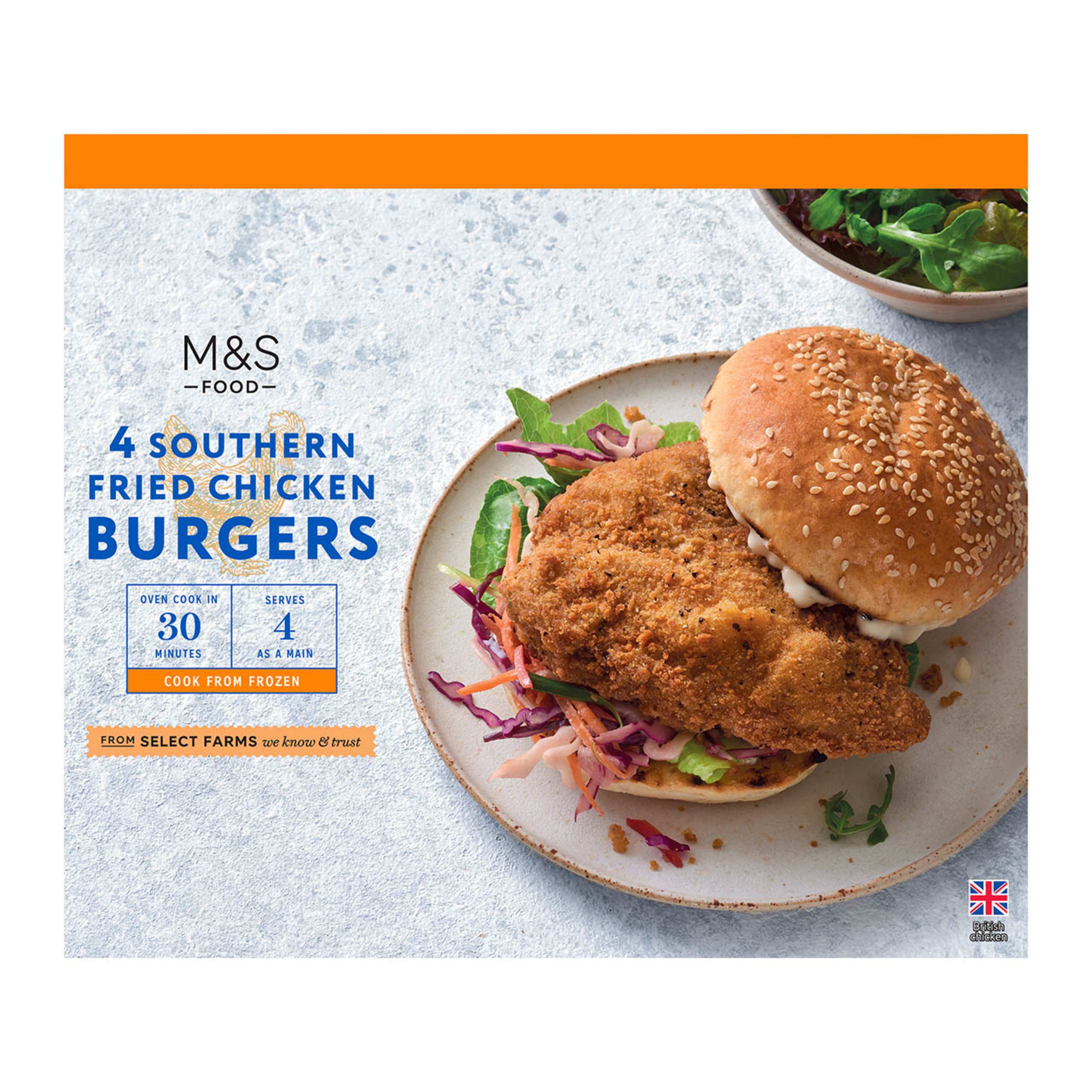 Make a tantalising midweek dinner with our Southern Fried Chicken Burgers. These juicy chicken breasts from M&S Select Farms are coated in a golden, lightly spiced peppery crumb and oven-cooked in half an hour. Serve inside a sesame seed bun with a generous dollop of cooling mayonnaise.