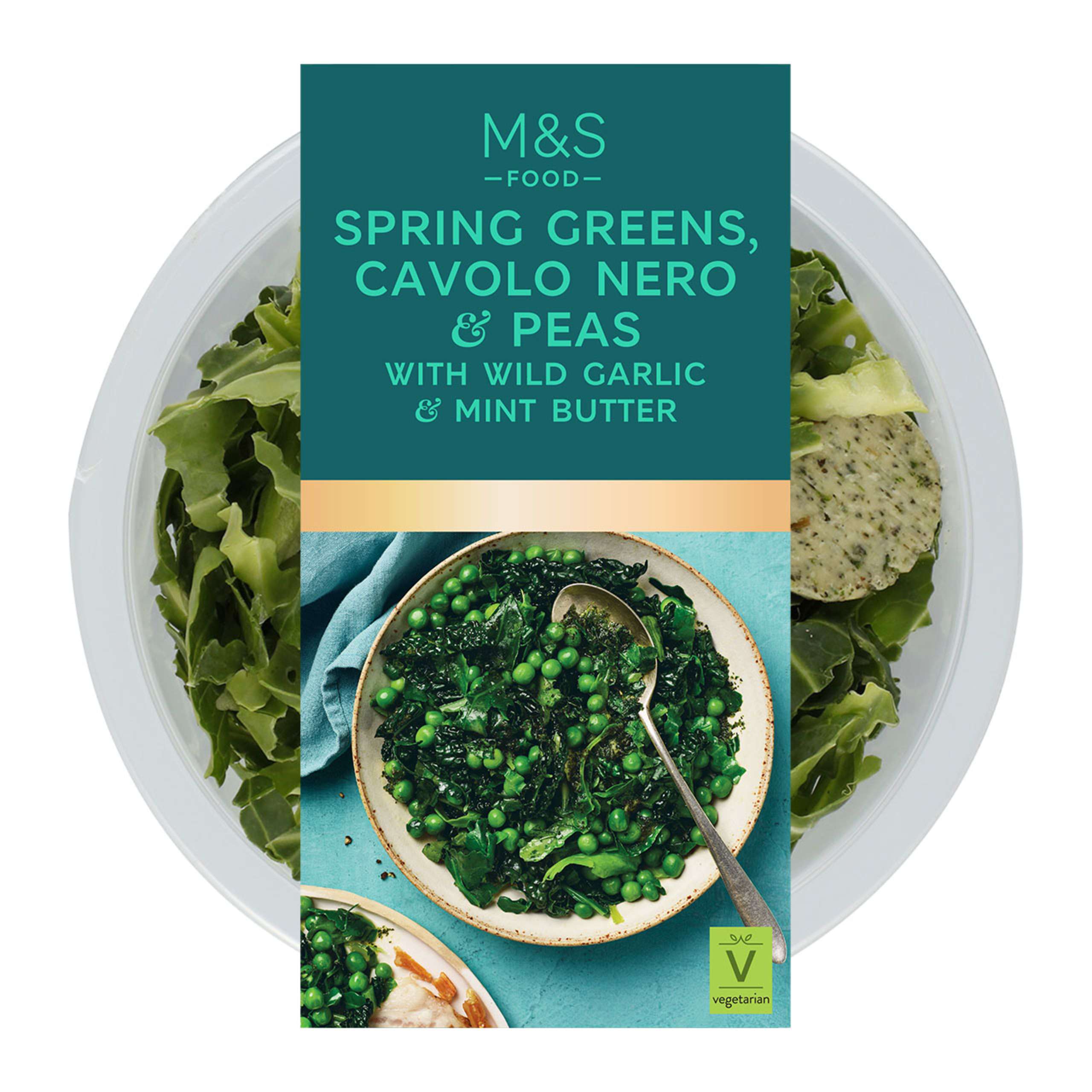 Serve a bounty of veg with our Spring Greens, Cavolo Nero and Peas mix. It's delicately flavoured with a generous slab of wild garlic and mint butter, giving this wholesome side dish a wonderfully glossy finish.
