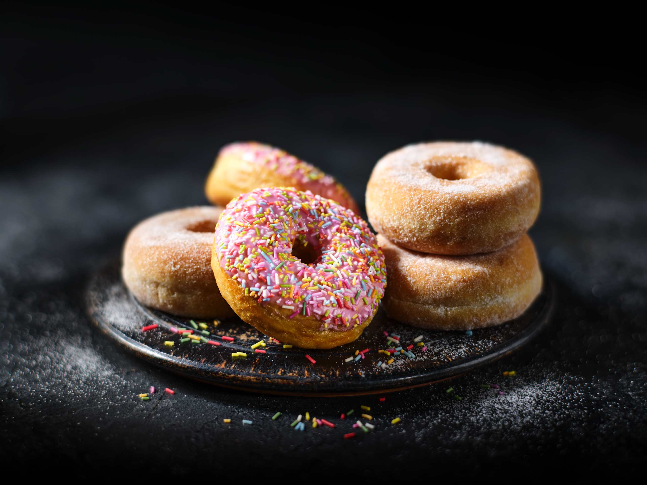 Topped with pink icing and coloured sugar strands, this ring doughnut is pretty in pink and sweet to eat as a teatime treat!