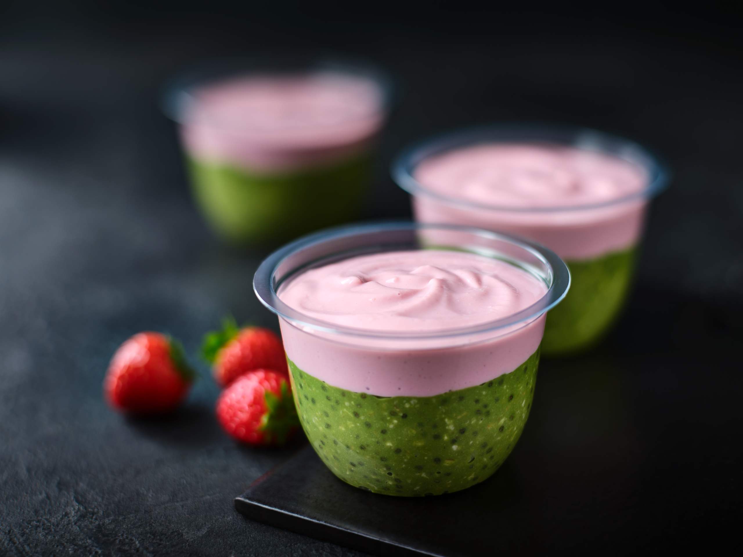 Pick up our Strawberry Matcha Overnight Oats for a nutritious start to your day. This limited edition food-on-the-move contains a layer of oats infused with matcha green tea, topped with a strawberry-flavoured high-protein yogurt.