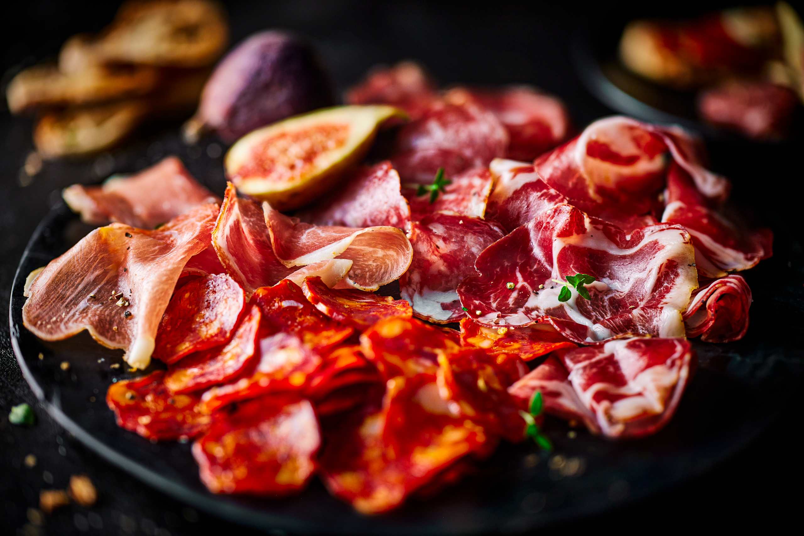 Our Suino Nero Selection Platter showcases favourite cuts from Calabria's iconic black pig, expertly crafted by the Madeo family. Enjoy the distinct flavours of spicy salsiccia, rich salame, peppery capocollo, and sweet lombo – all enhanced with traditional Italian seasonings.