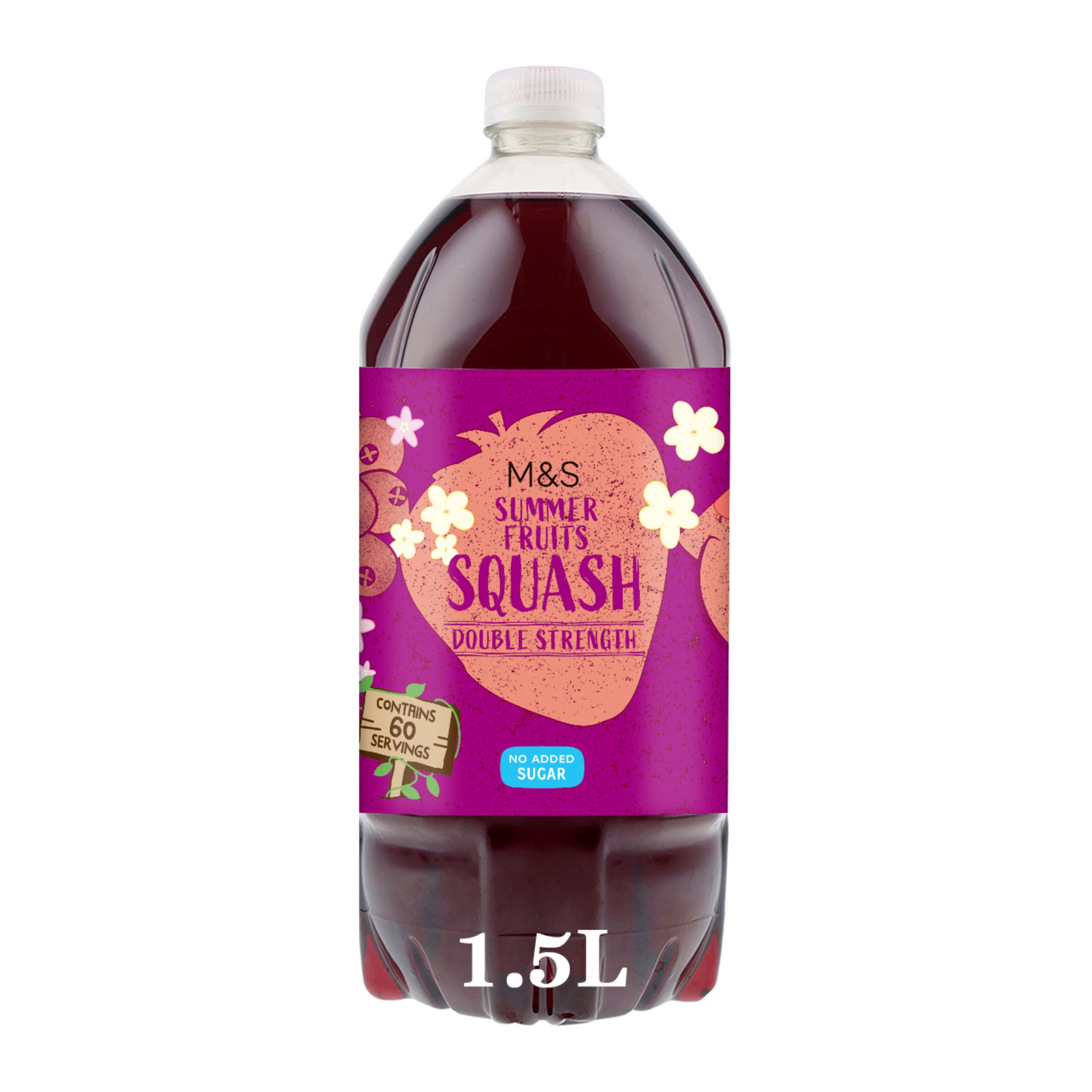 Made with 20% real fruit, our double-strength Summer Fruits Squash is bursting with ripe flavours of strawberry and raspberry. Contains no added sugar, artificial colours or flavourings.