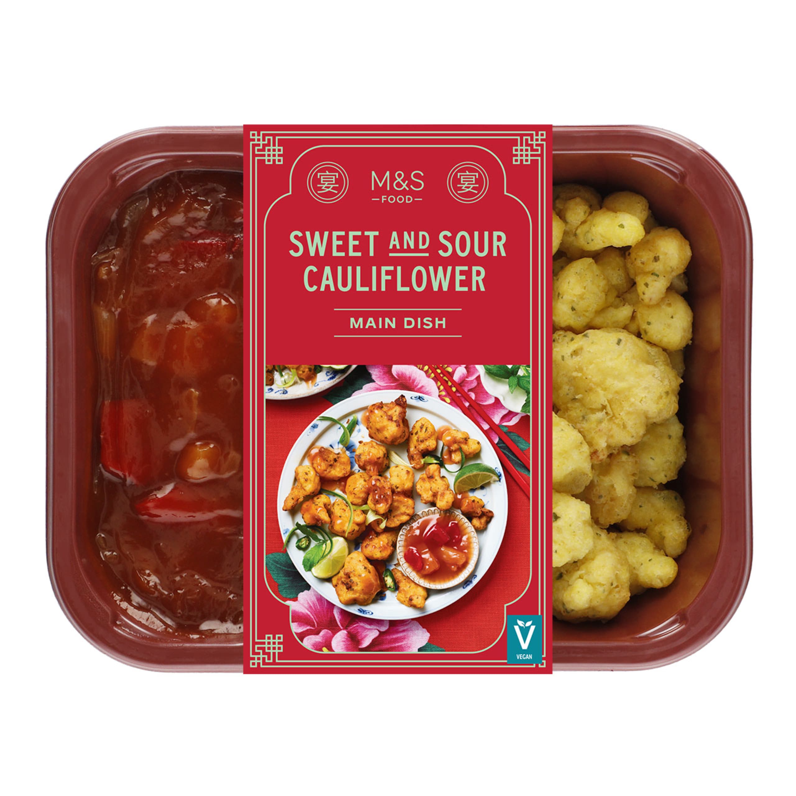Our Sweet and Sour Cauliflower is a vibrant dish. It features deep fried, battered cauliflower florets with pineapple and peppers in lusciously tangy sweet and sour sauce.