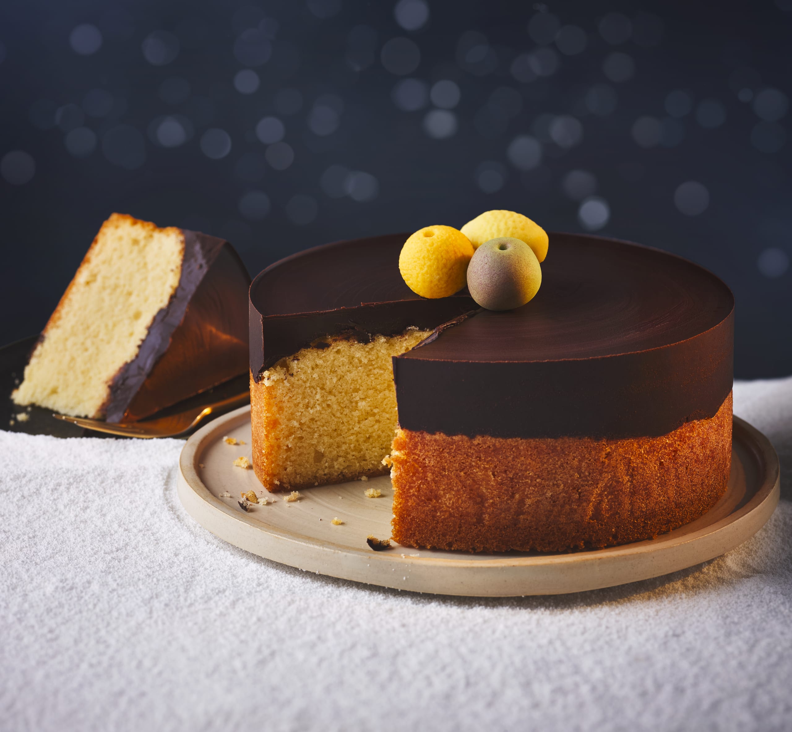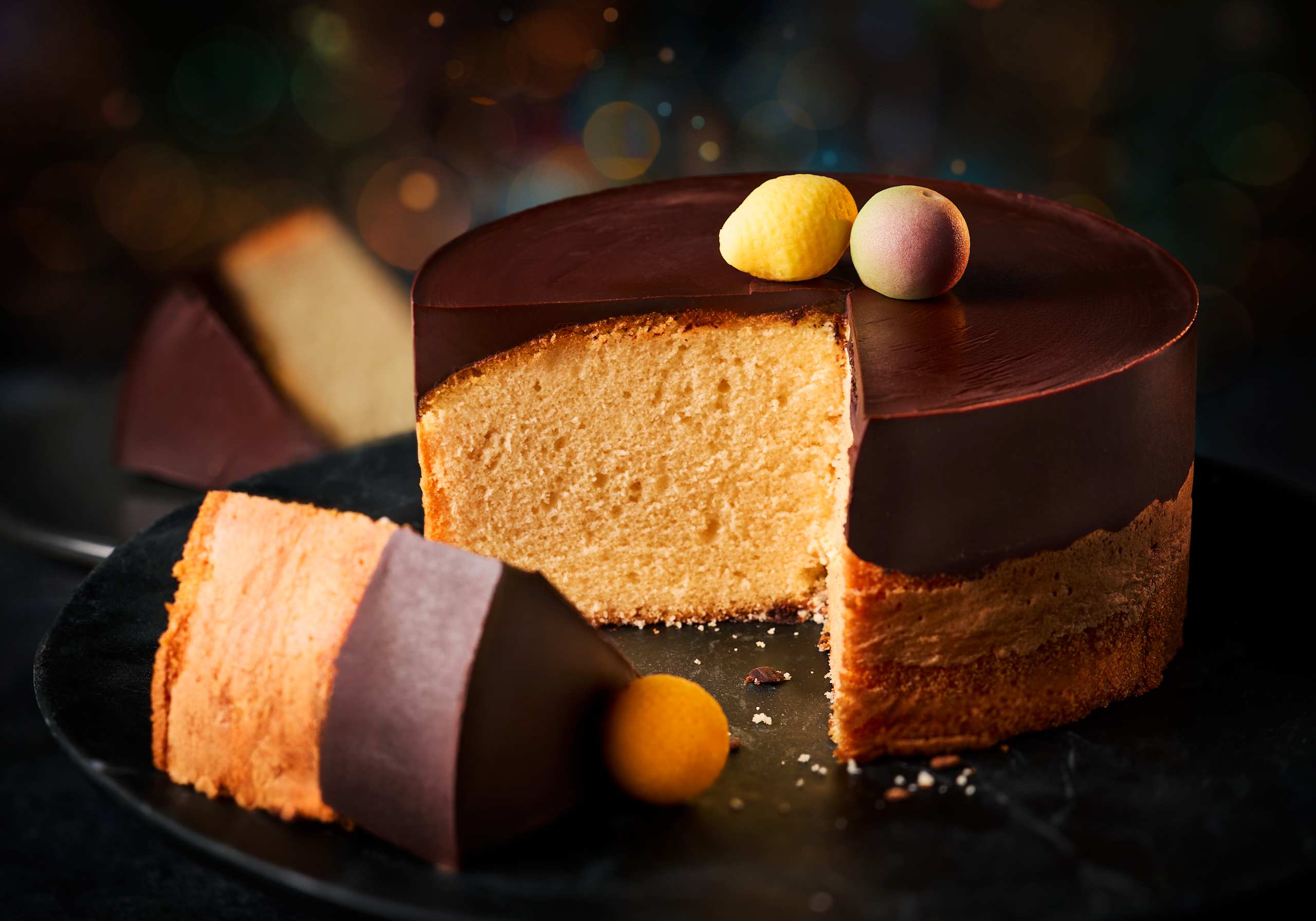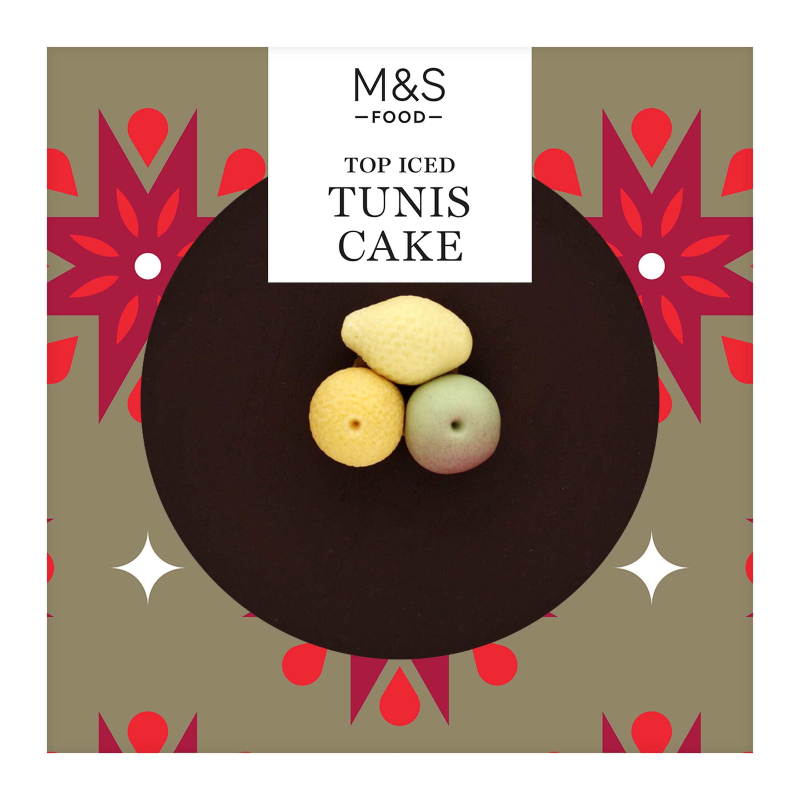 A traditional festive favourite, our Top Iced Tunis Cake is a moist, all-butter sponge with chocolate-flavoured topping and marzipan fruits. A great alternative to a traditional Christmas cake.