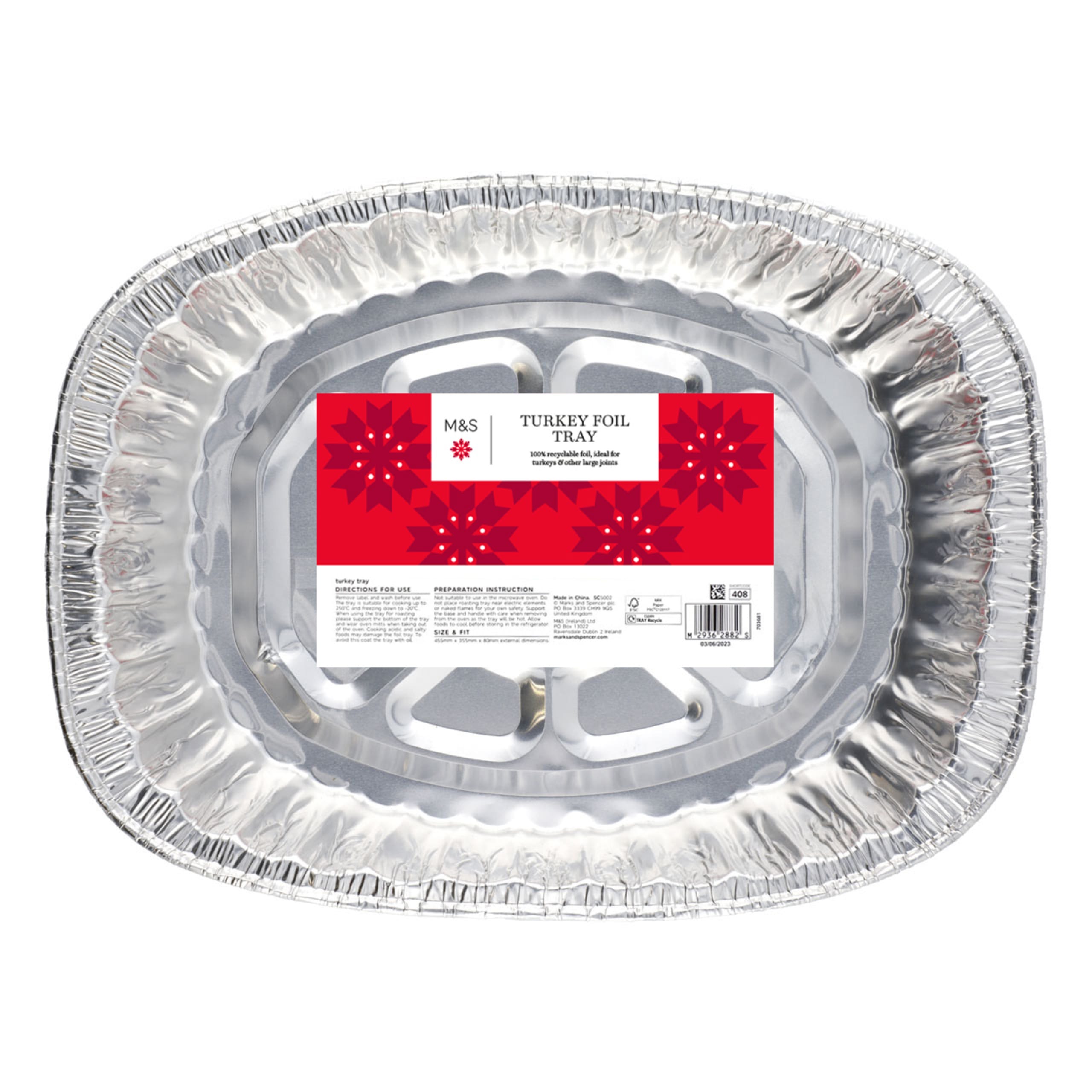 Use our fuss-free Turkey Foil Tray, made of 100% recyclable foil, ideal for turkeys and other large joints ensuring strength you can trust, all the juices in one place and no washing up!