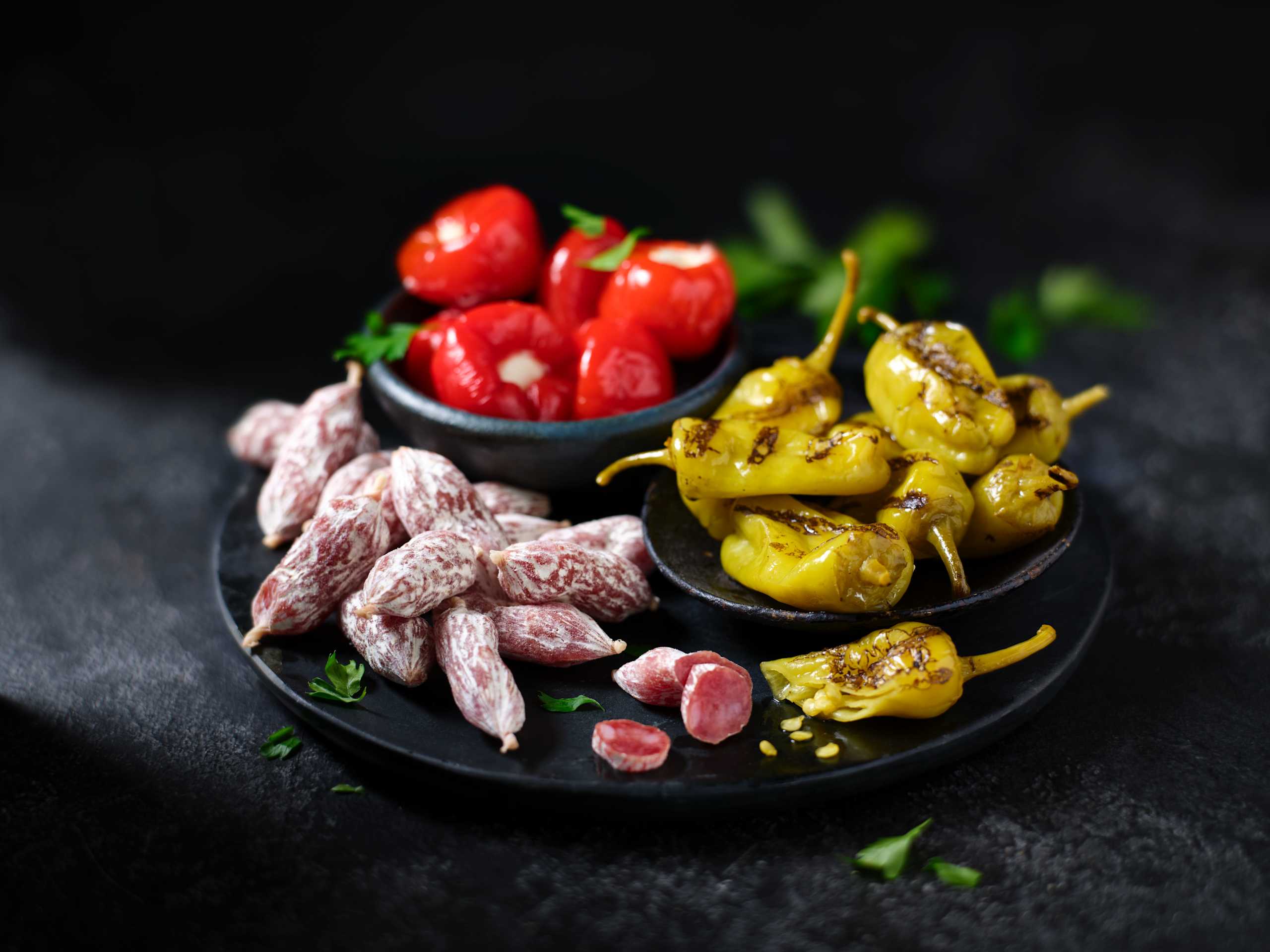 Small, mildly spicy chilli peppers with a distinctive smoky, chargrilled flavour. Perfect for adding a gentle kick to your picky bits board, or spooned over flatbreads, salads or kebabs for a bold finishing touch.