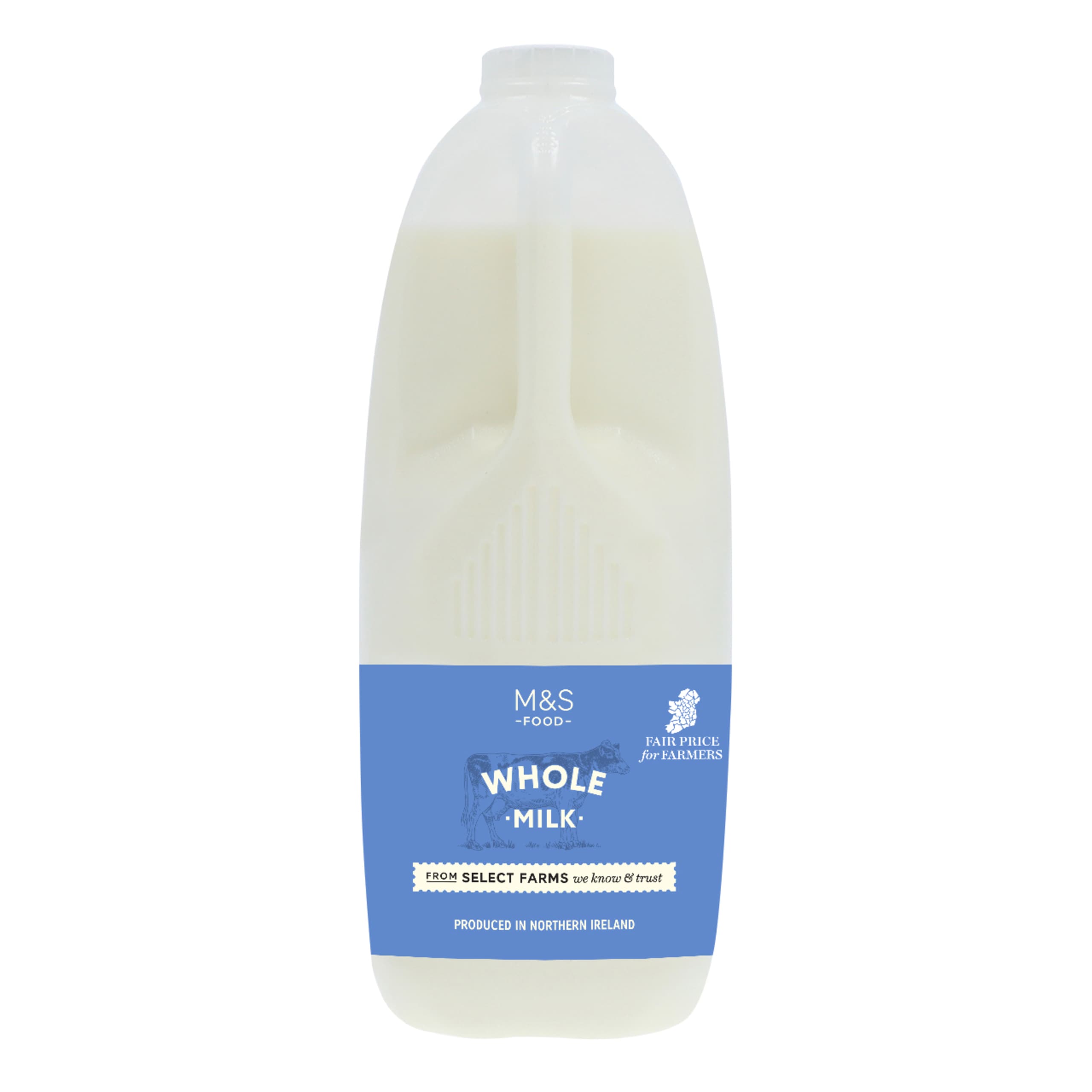 Produced in Northern Ireland, our Whole Milk comes from M&S Select Farms we know and trust. Our fresh milk is 100% British RSPCA Assured and we pay our farmers a fair price thanks to the M&S Milk Pledge.